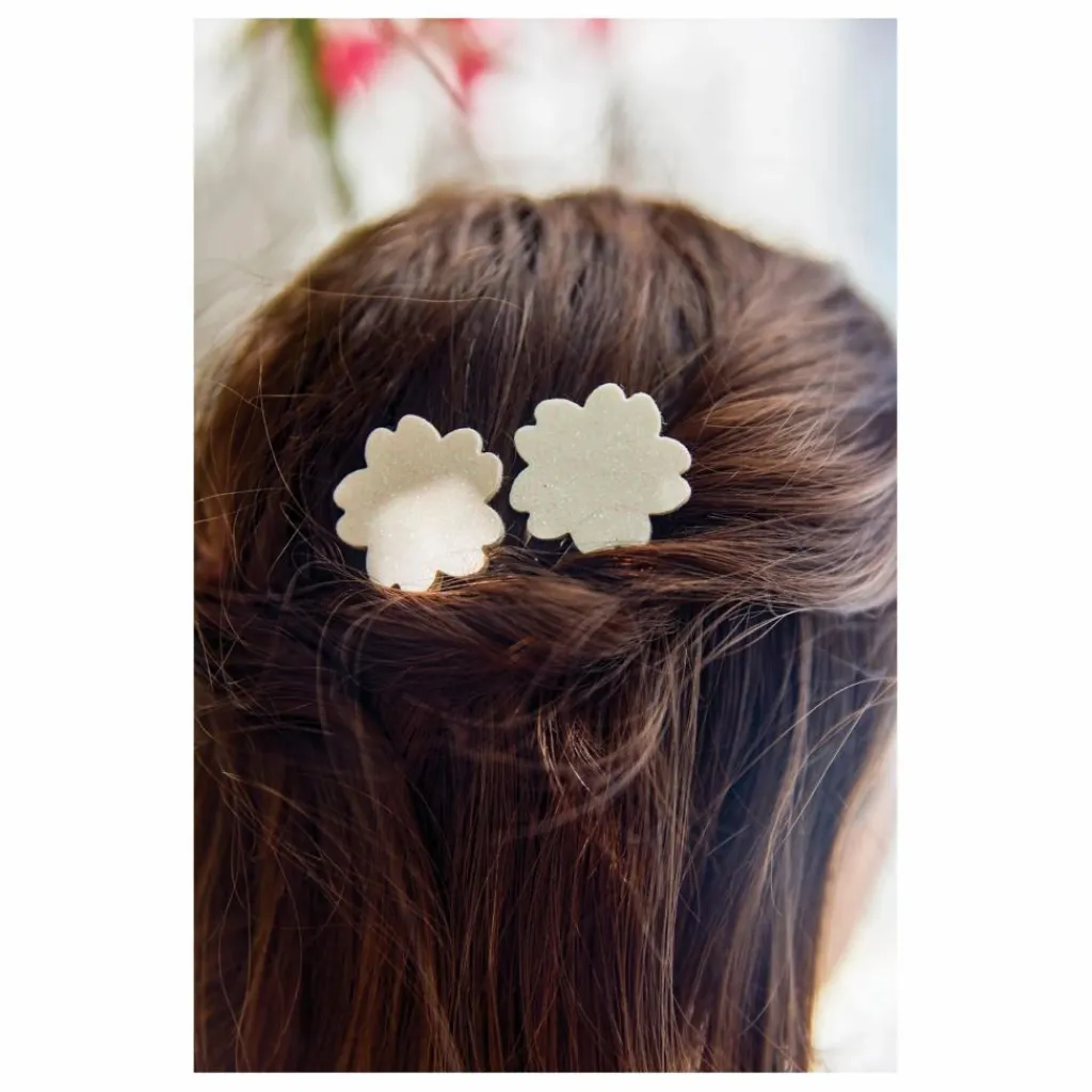 - Ajoutez une touche de magie à la coiffure de votre fille avec ces barrettes en forme de fleurs à paillettes de nacre ! Inspirées du thème « Jardin fantastique », elles sont idéales pour illuminer les cheveux tout en apportant une touche d’élégance.