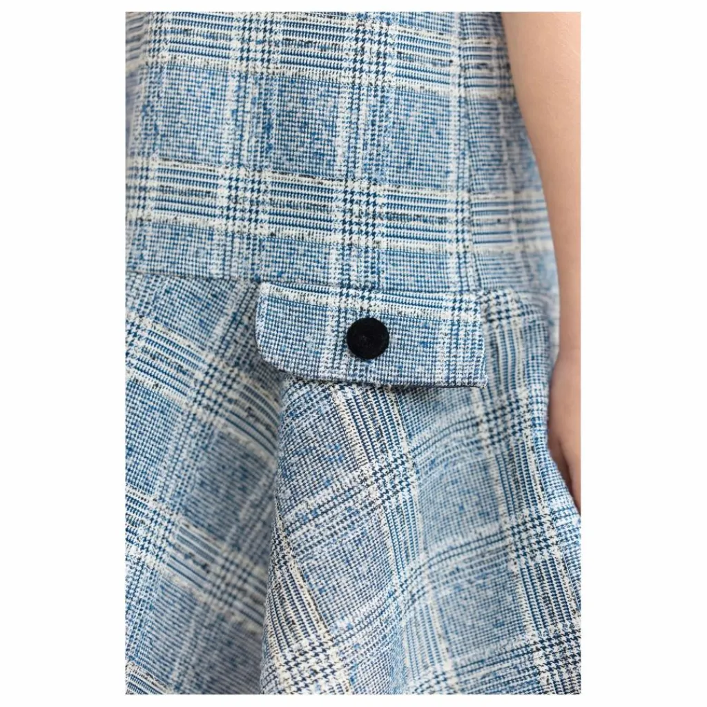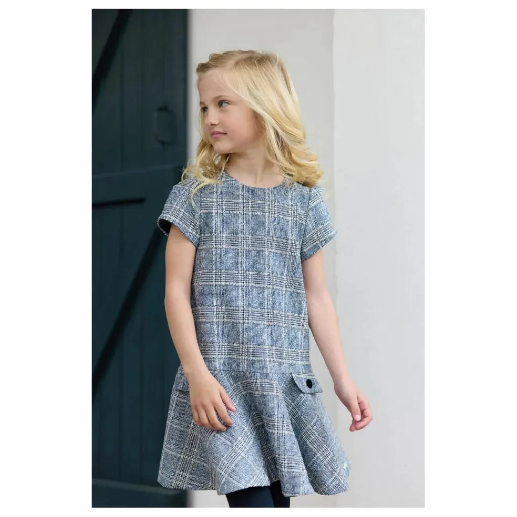 - Cette robe pour junior fille, en couleur marine et confectionnée en tweed, se distingue par son bas plissé et ses deux poches pratiques. Son col rond et ses manches courtes apportent une touche de simplicité élégante. Une robe à la fois chic et confortable, parfaite pour le quotidien.