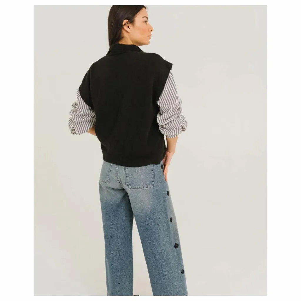 - UXUE est un polo sans manches. Intemporel de la collection Tinsels. A porter à même la peau, sur une robe ou une chemise. Ce pull est tricoté dans un fil italien, en Italie. Maille ultra douce, résistante et chaude.