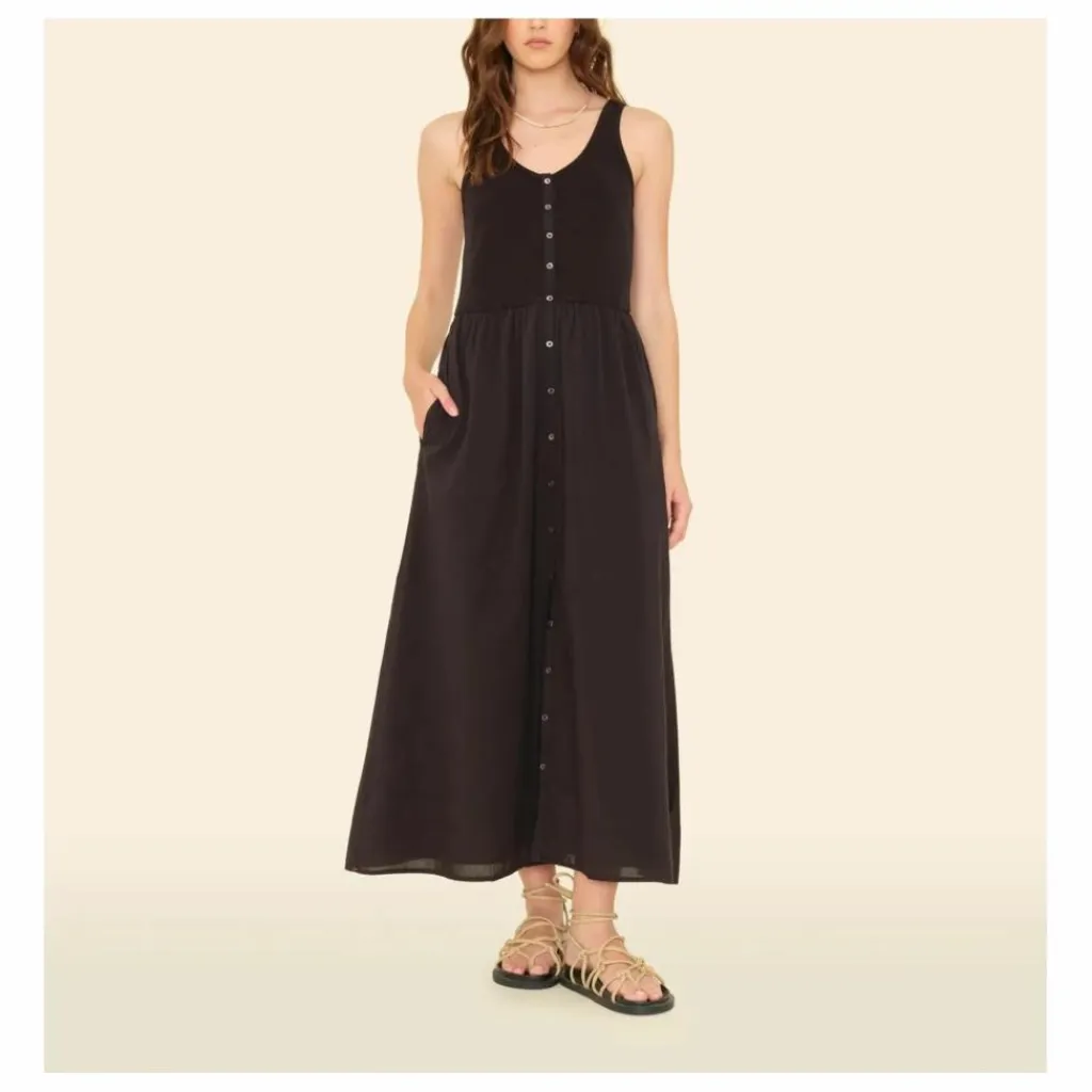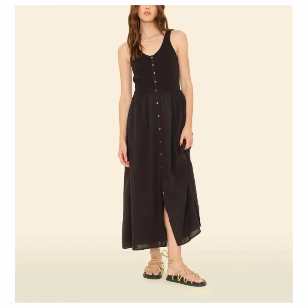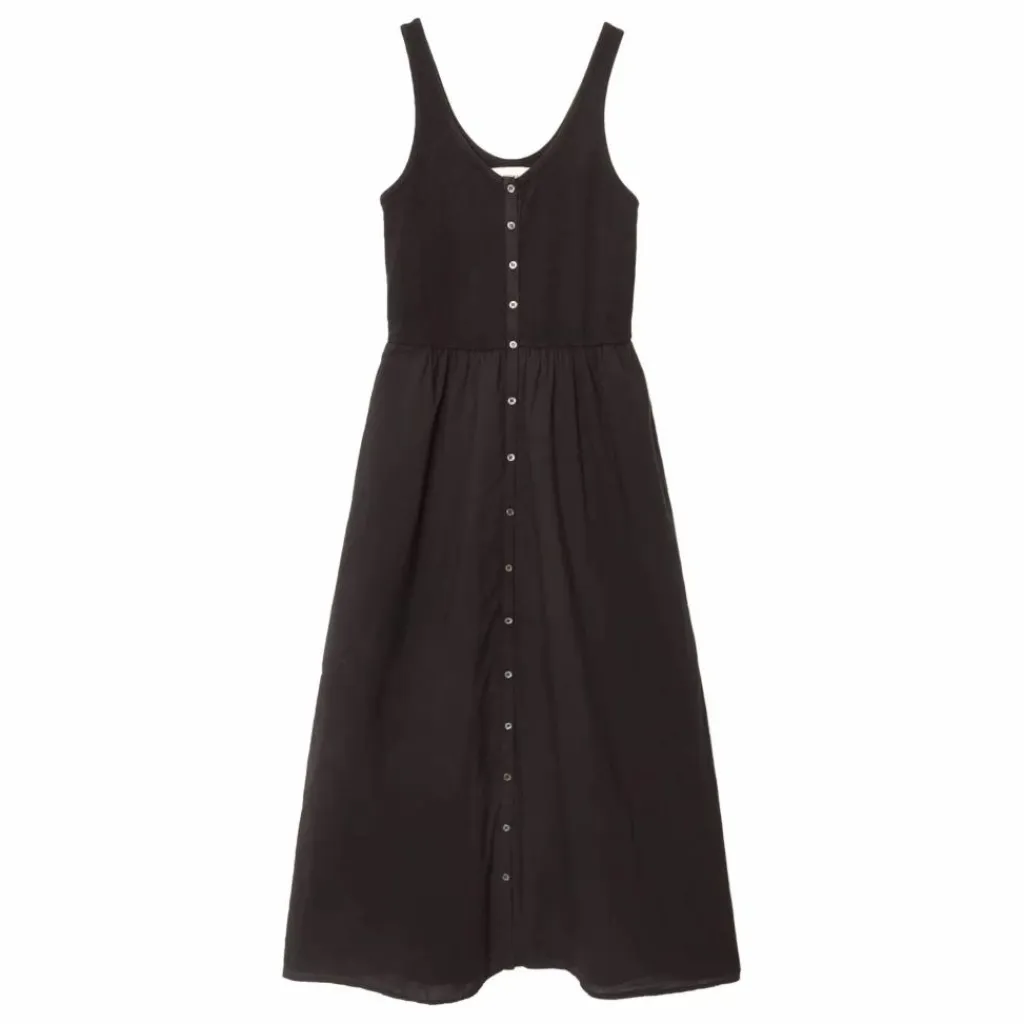 Le meilleur des deux mondes. Fenix est une nouveauté cette saison dans notre popeline de coton tissée légère classique pour un look et un toucher décontractés. Cette robe longue sans manches est entièrement doublée et présente une fermeture à boutons sur le devant, un haut en coton côtelé contrasté, une jupe ample et des poches sur les coutures latérales.
