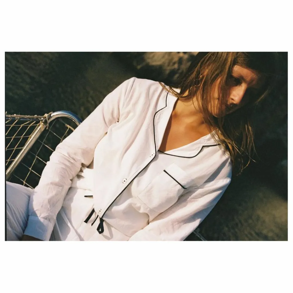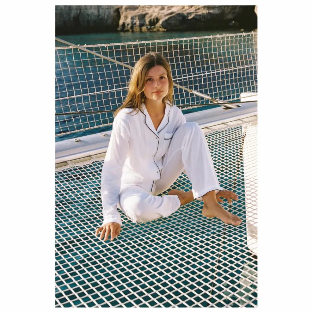 - Veste manche longue et pantalon tout doux, finition biais contrasté.