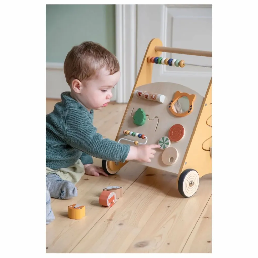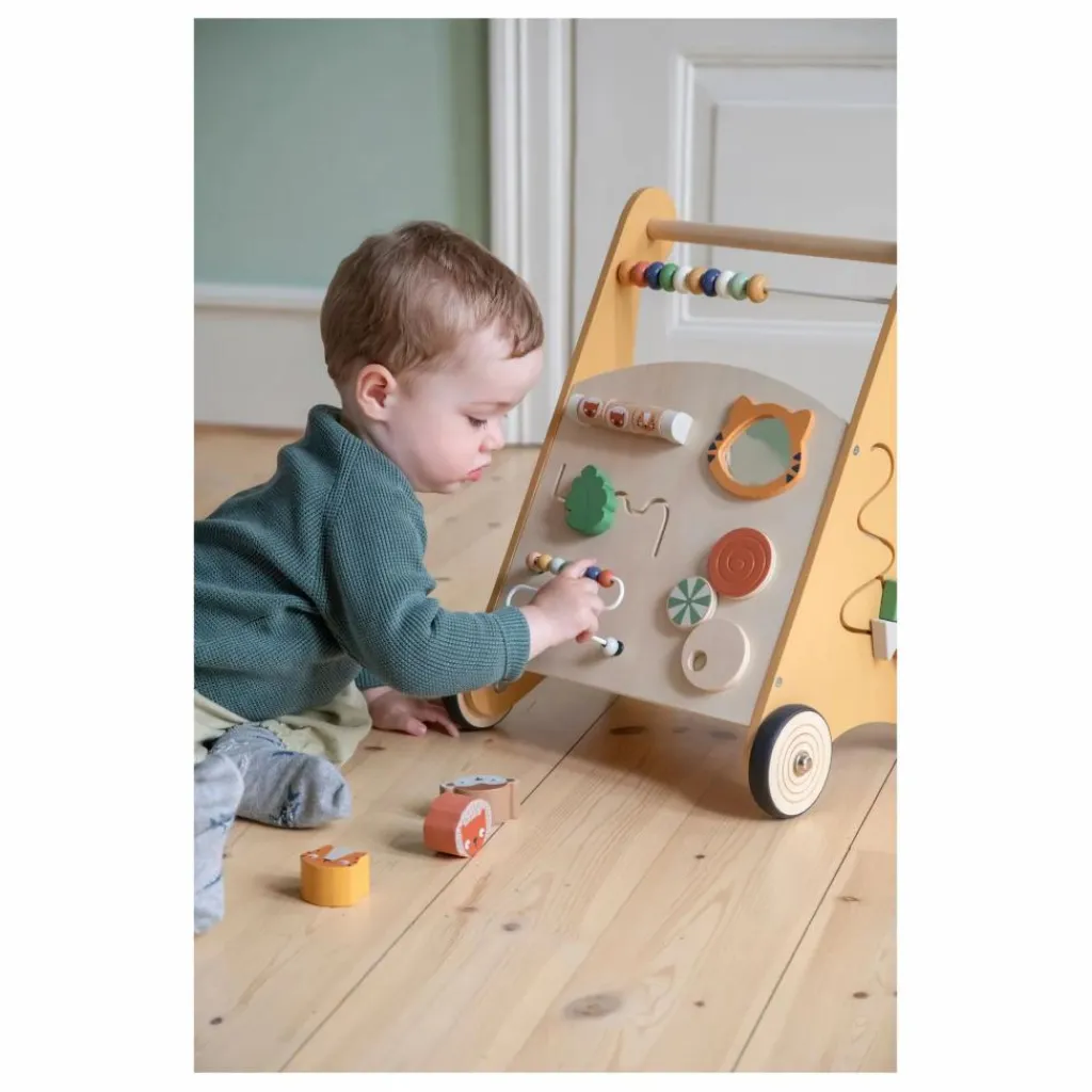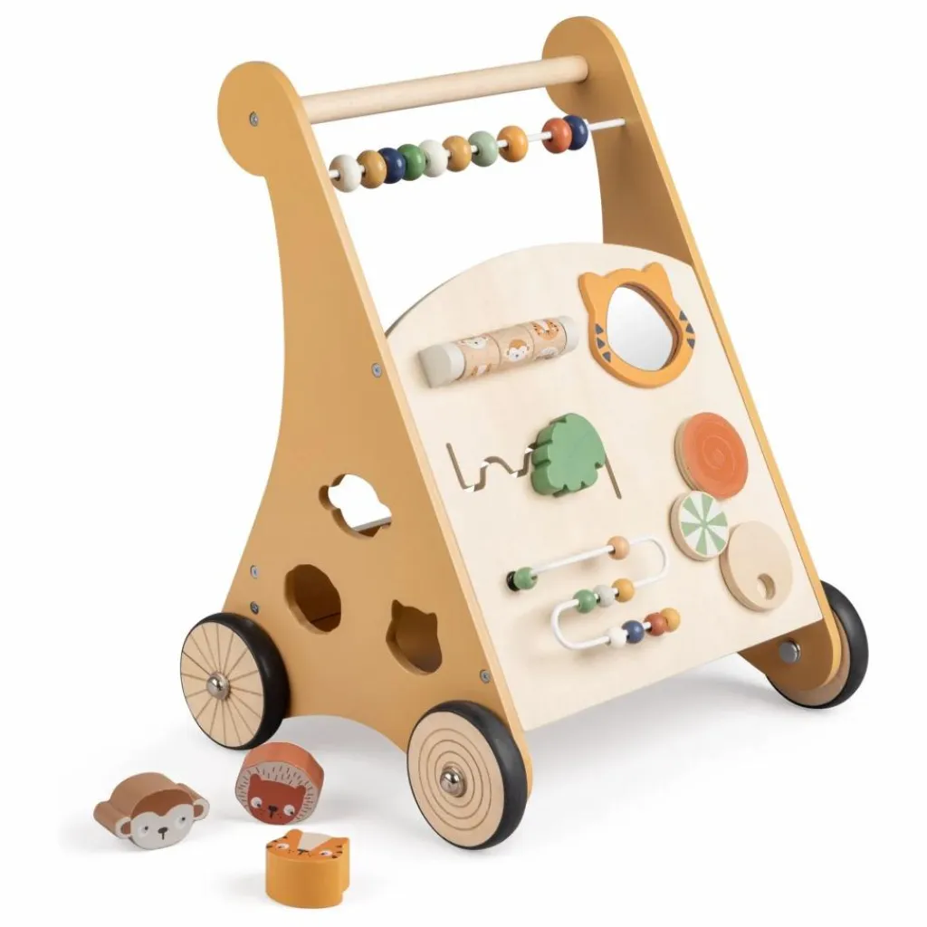 Offrez à votre tout-petit un soutien idéal pour ses premiers pas avec ce déambulateur d’activités au design élégant, fabriqué en bois certifié et orné d’éléments issus du thème Wildlife de Sebra.