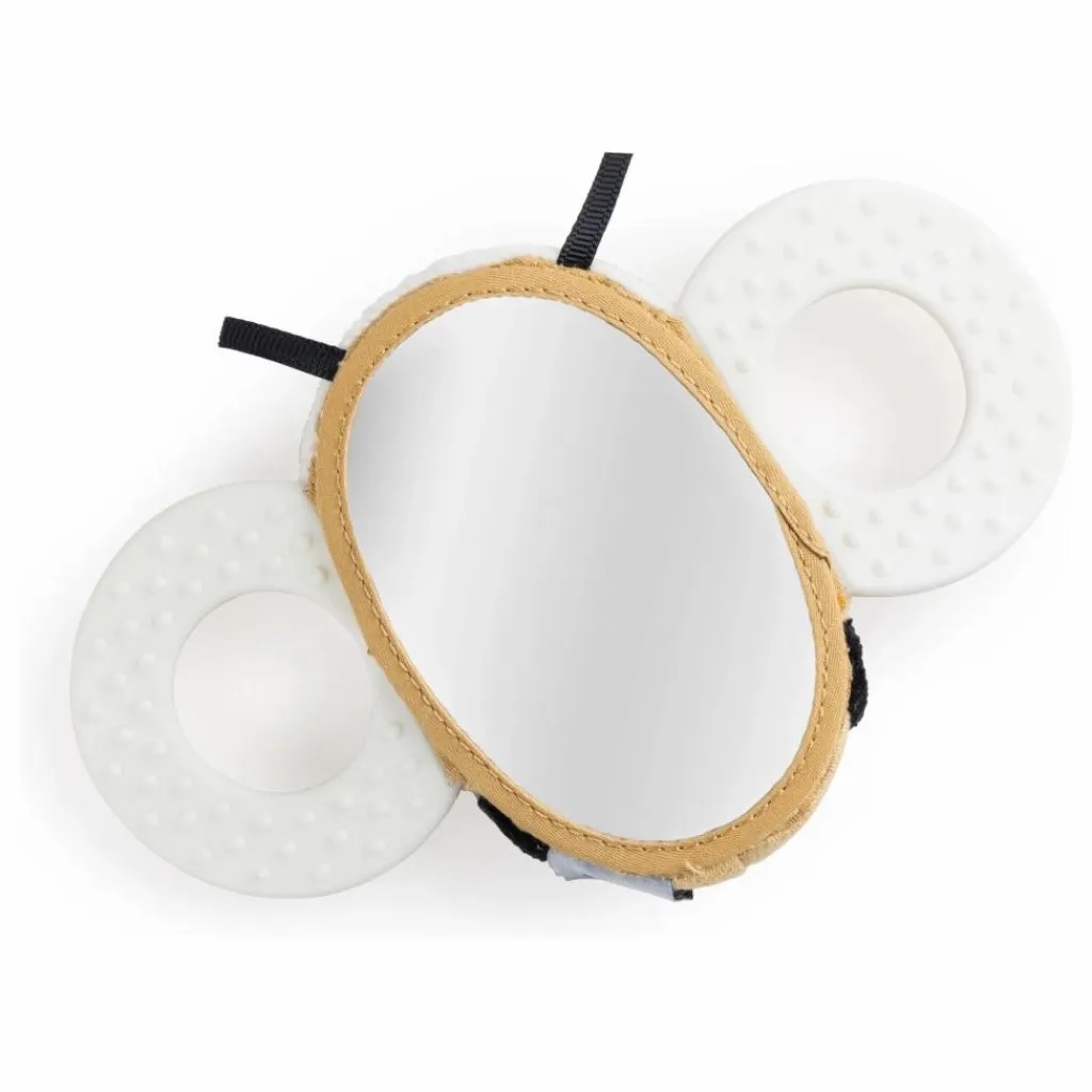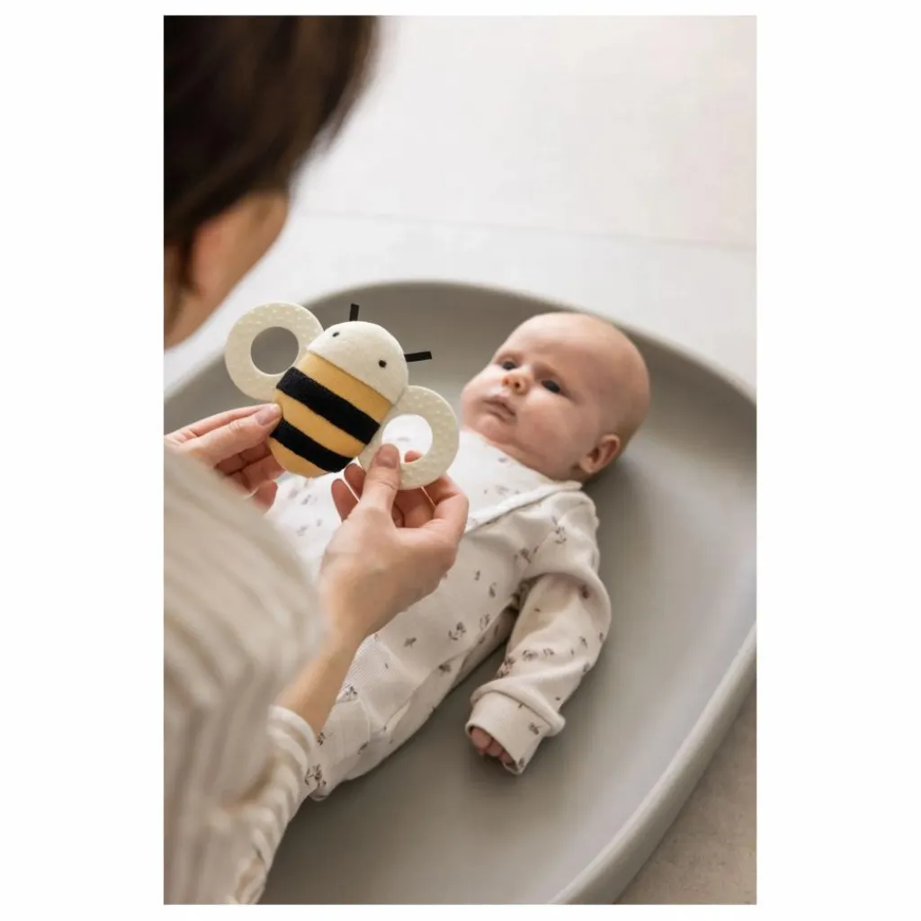 - 85% coton, 15% polyester – Rembourrage : Rembourrage : 100% polyester (recyclé) – Jouet d’éveil : 100% Silicone (TPE)