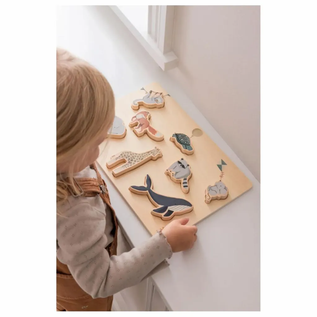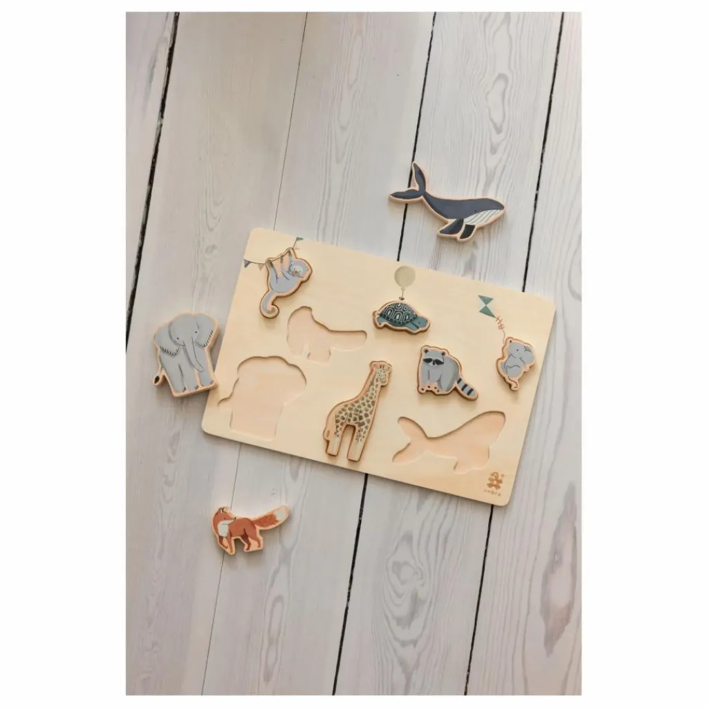 - Les pièces de puzzle robustes ont la forme de huit animaux du thème du Monde de Sebra. Chaque pièce présente un motif charmant et une forme qui correspond à celle de la planche de puzzle qui l’accompagne, ce qui aide les petites mains à trouver le bon emplacement pour chaque pièce et à réussir à compléter le puzzle. Ce puzzle est un moyen amusant pour les petits d’exercer leur doigté et de reconnaître les formes et les couleurs en mettant les pièces en place. Les adorables motifs en bois peuvent également être utilisés pour d’autres jeux, servir d’inspiration pour inventer des histoires sur les motifs ou décorer la chambre de l’enfant lorsqu’ils ne sont pas utilisés. La base plate leur permet de se tenir debout indépendamment, ce qui les rend idéaux pour la décoration. Ce puzzle en bois robuste a été conçu au Danemark et est fabriqué dans une qualité supérieure qui peut être transmise. C’est le cadeau idéal pour ce premier anniversaire magique, lorsque l’enfant a appris à s’asseoir et à jouer tout seul.
