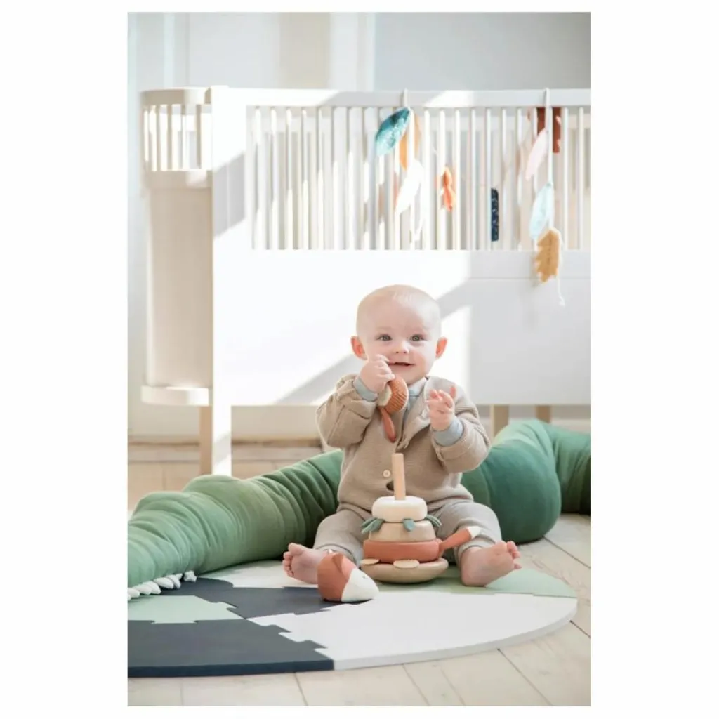Ce renard à empiler permet de développer la motricité fine de votre enfant qui aimera voir basculer le jouet et empiler les anneaux. Le petit renard sera également une jolie décoration sur une étagère ou une commode.