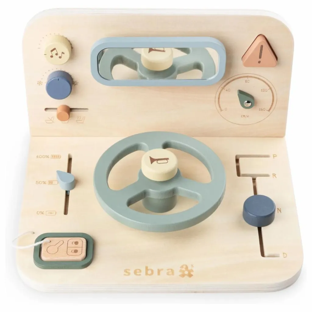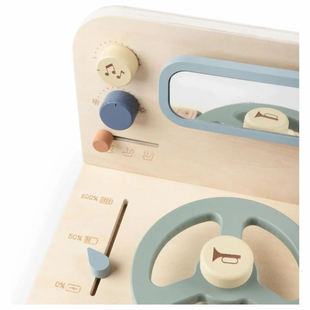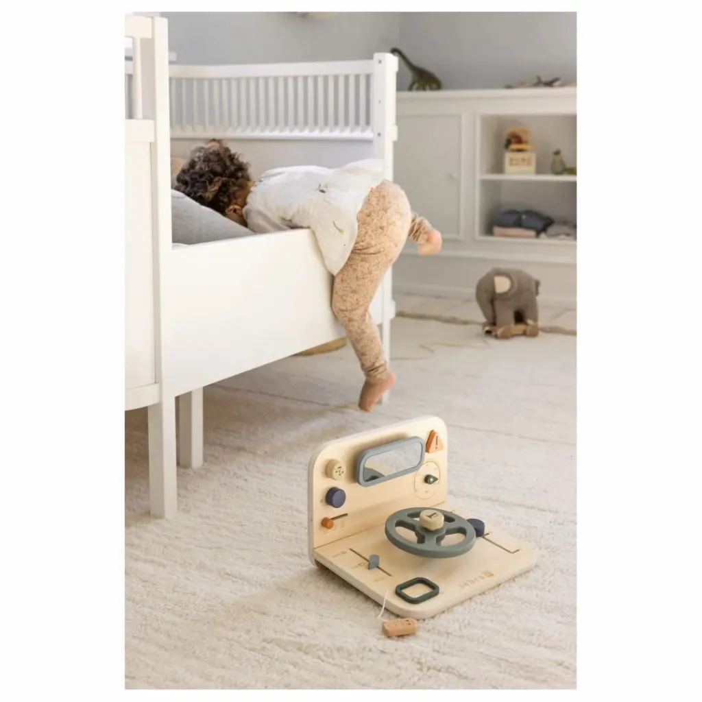 - Le panneau est rempli de fonctions passionnantes qui imitent les détails d’une vraie voiture : Tournez le volant, klaxonnez, regardez dans le rétroviseur, changez de vitesse et appuyez sur le bouton de détresse. Tout a été conçu en s’inspirant d’une voiture électrique moderne. Le panneau d’activités est conçu pour stimuler l’imagination et la motricité fine de votre enfant. Sa construction robuste et ses détails bien pensés en font un choix sûr et durable pour des heures de jeu et d’exploration. Conçu au Danemark dans un souci de fonctionnalité et d’esthétique, le panneau est fabriqué en bois certifié et s’assemble facilement à l’aide des deux vis fournies.