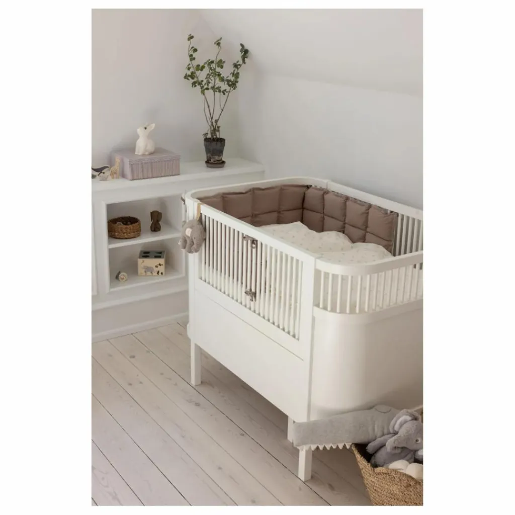 - Décorez votre lit d’enfant avec un tour de lit qui protège votre bébé des bords durs du lit et empêche la tétine de tomber. Le tour de lit Kapok s’adapte au lit Sebra, Baby & Jr, avec la base en position haute et un lit standard de 60 x 120 cm. Vous pouvez adapter le tour de lit à un lit plus petit en le faisant chevaucher, par exemple, au niveau du pied. Les sangles d’attache permettent de fixer le tour de lit en haut et en bas. Le tour de lit se décline en plusieurs couleurs et imprimés magnifiques qui peuvent être mélangés et assortis à la literie, aux draps et aux baldaquins de Sebra, ce qui vous permet de créer un environnement de sommeil unique et visuellement attrayant pour votre petit. Le kapok est une fibre naturelle douce et soyeuse, dotée d’une substance amère antibactérienne naturelle qui empêche les acariens d’y vivre. Le kapok est donc un matériau idéal pour les personnes souffrant d’allergies. Le kapok est également respirant et régulateur de température. Lorsque vous lavez un produit en kapok, il change toujours un peu. C’est pourquoi nous vous conseillons de le suspendre à l’air libre si vous souhaitez le rafraîchir un peu. S’il y a une tache sur le produit, vous pouvez la nettoyer délicatement pour éviter de mouiller tout le produit. Si le lavage de votre produit en kapok est inévitable, il est essentiel de suivre les instructions suivantes.