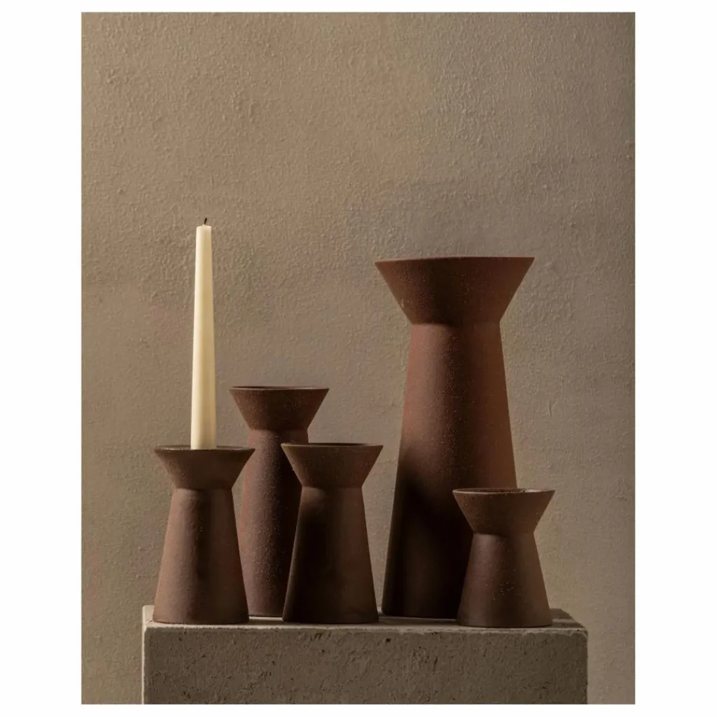 Marie-Ann est le nom d’une collection de vases et de deux bougeoirs en argile rouge mélangée avec de la chamotte, pour une texture mate et authentique. L’extérieur n’est pas émaillé, tandis que l’intérieur est rendu étanche grâce à un revêtement en silicone. Les formes délibérément archétypales, plutôt géométriques, les rendent polyvalents et adaptés à différents styles d’intérieurs.
