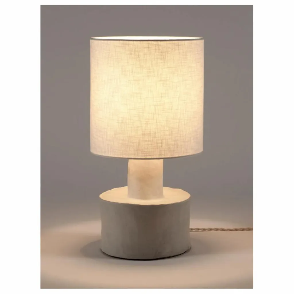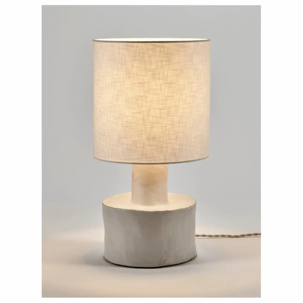 Cette jolie lampe est, pour Marie Michielssen, une source de chaleur et de confort. Même éteint, l’objet doit dégager quelque chose. Elle a donc choisi deux matériaux en fonction : la céramique pour le pied et le lin pour l’abat-jour.