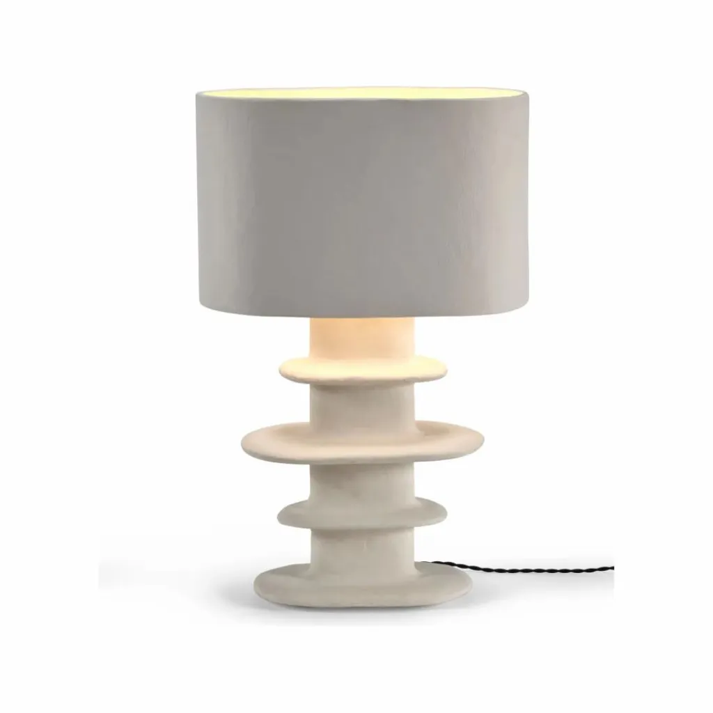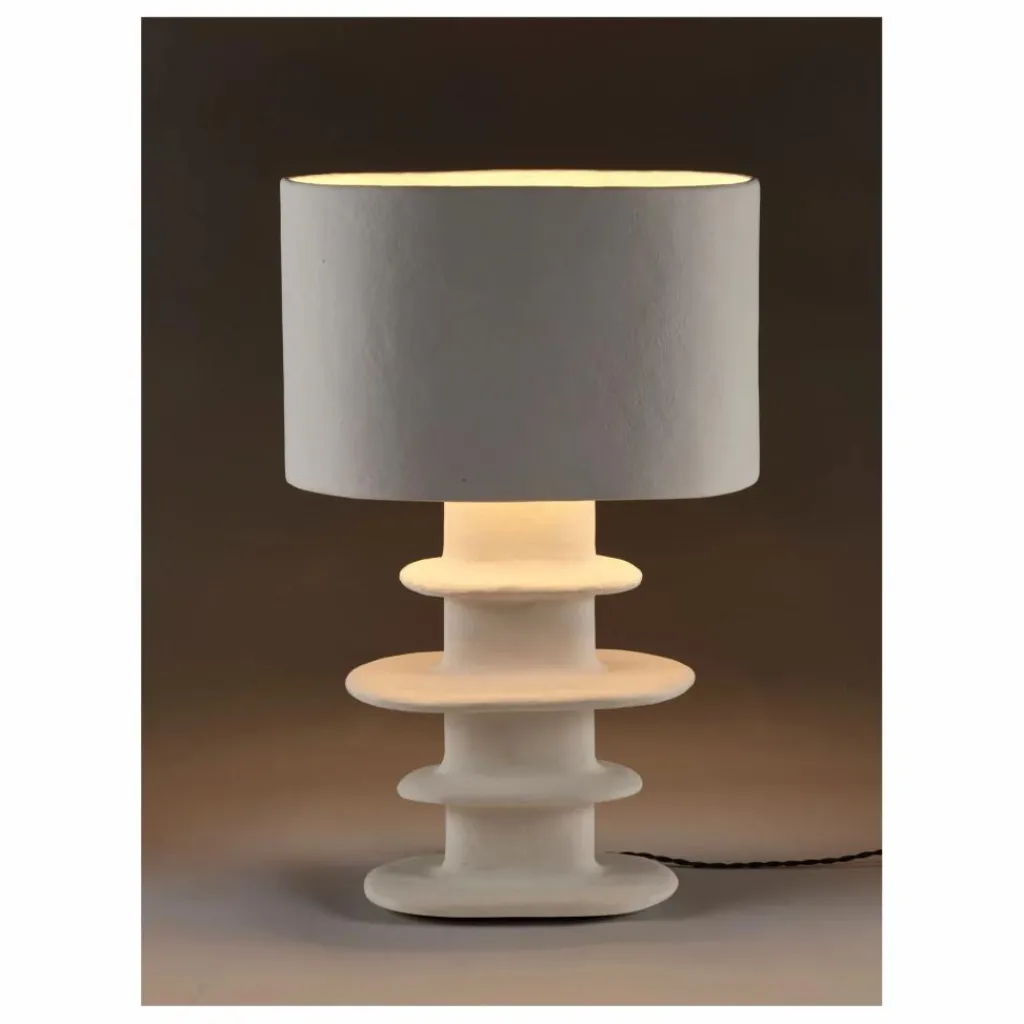 La lampe Earth édition 2024, plus grande que les modèles précédents, est entièrement réalisée en papier mâché. Son pied modelé à la main, qui rappelle les vases en céramique Billy sortis précédemment, capture la lumière d’une manière magique. La texture et la couleur du papier mâché confèrent toujours une touche artistique aux objets.