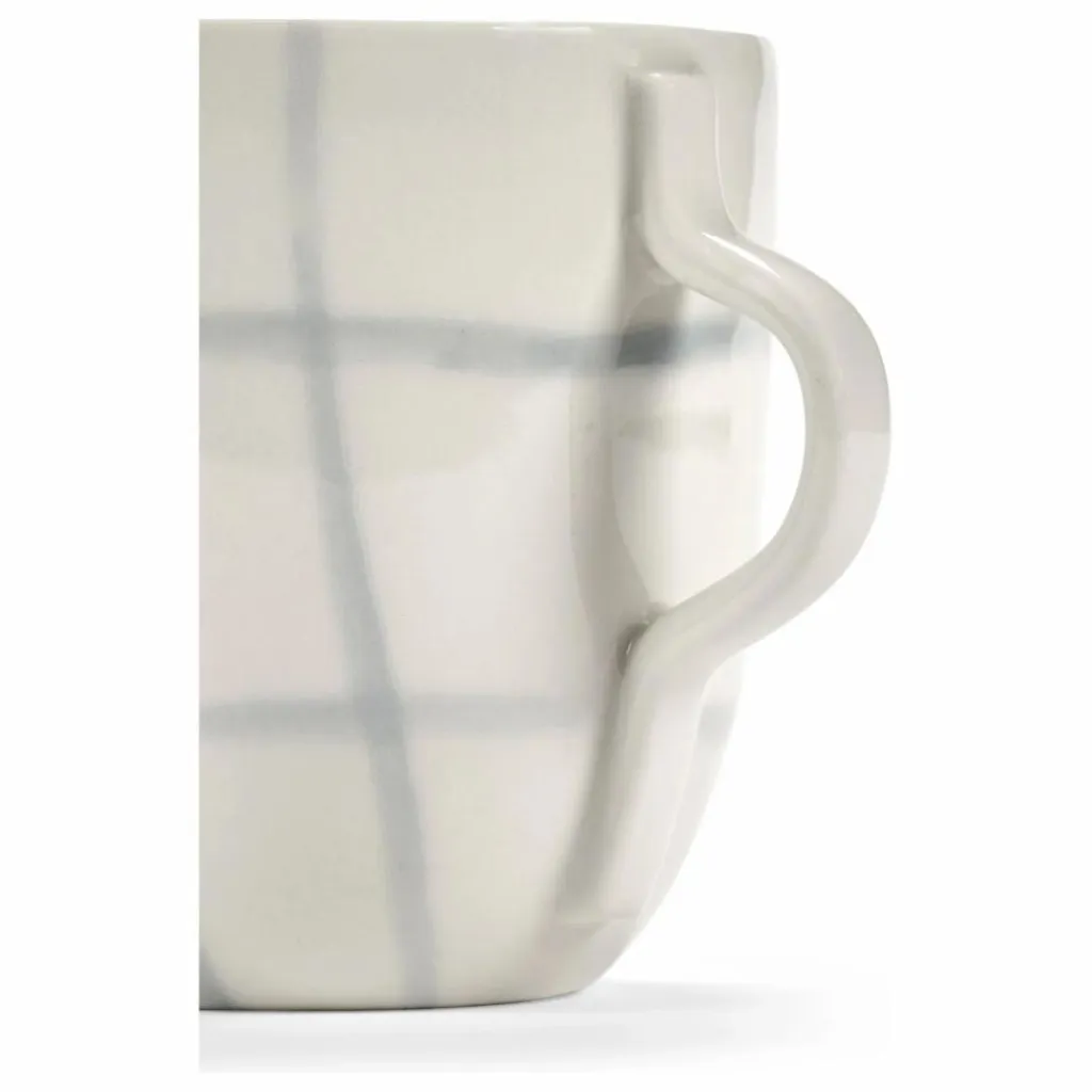 - Kelly Wearstler est partie d’un motif graphique numérique, inspiré des principes du Bauhaus, pour concevoir Zuma, sa gamme de vaisselle en porcelaine. Chaque motif est estampé à la main sur les pièces pour leur donner un aspect et un toucher peints à la main, après quoi la glaçure est appliquée. Les motifs varient et vous pouvez facilement mélanger et assortir les différentes formes et couleurs – blanc, gris foncé et orange doux qui est utilisé comme couleur d’accent.