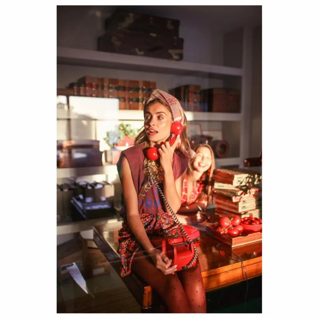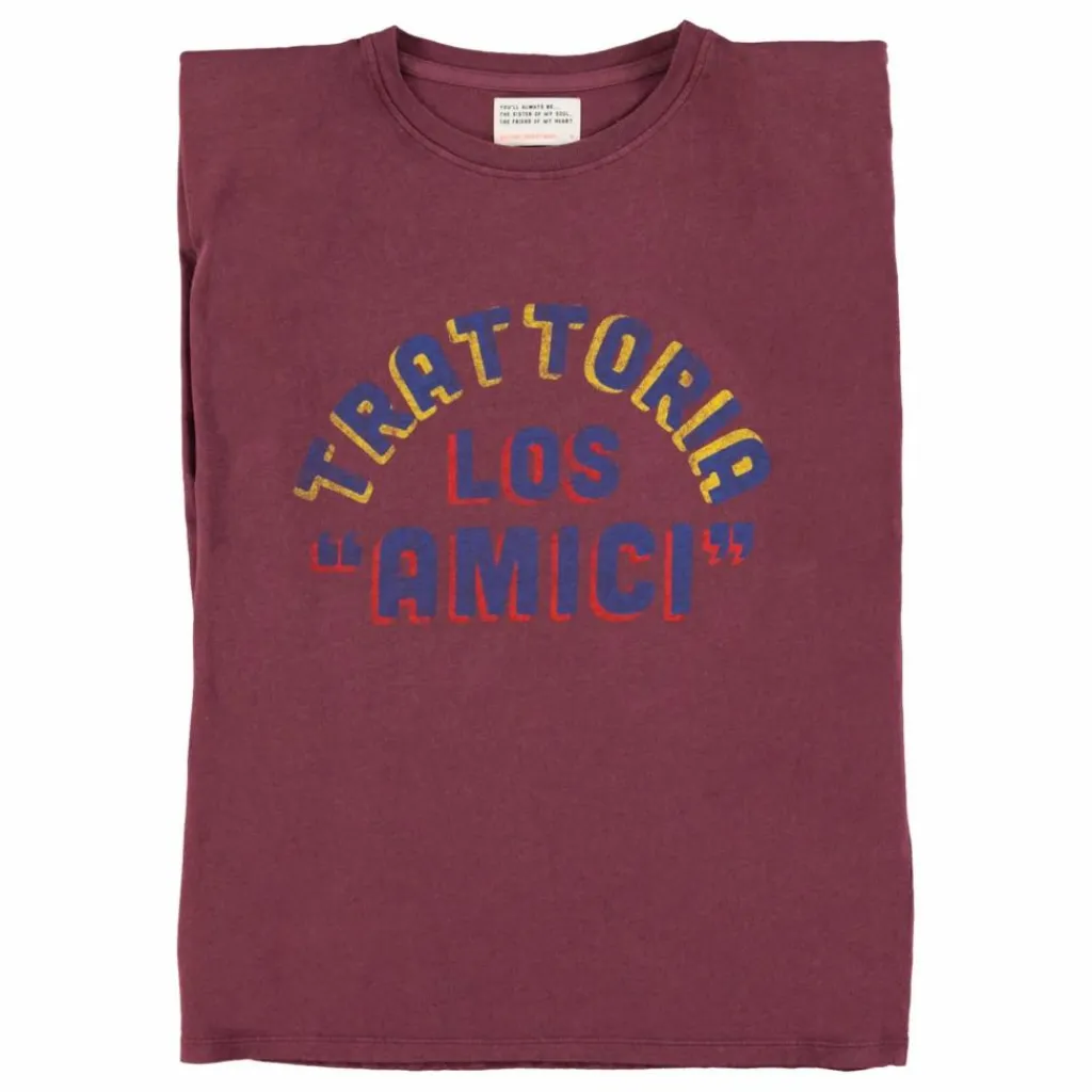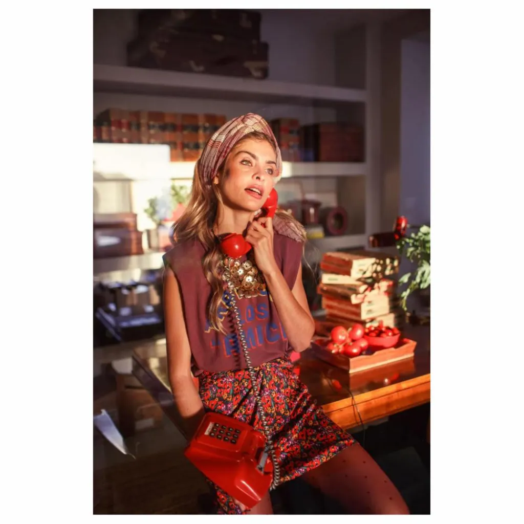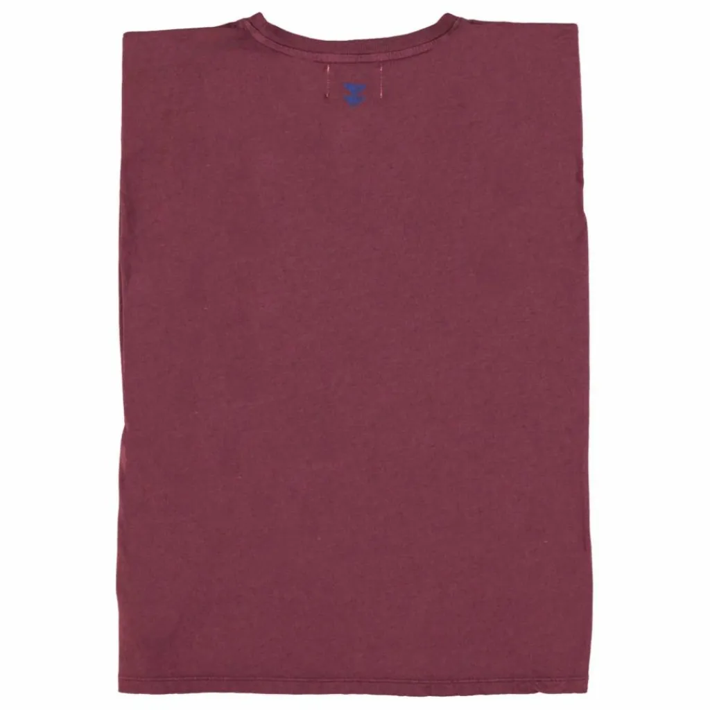 - T-shirt à col rond côtelé et manches à emmanchures avec épaulettes. Imprimé sur le devant. Petit logo imprimé sur le col.
