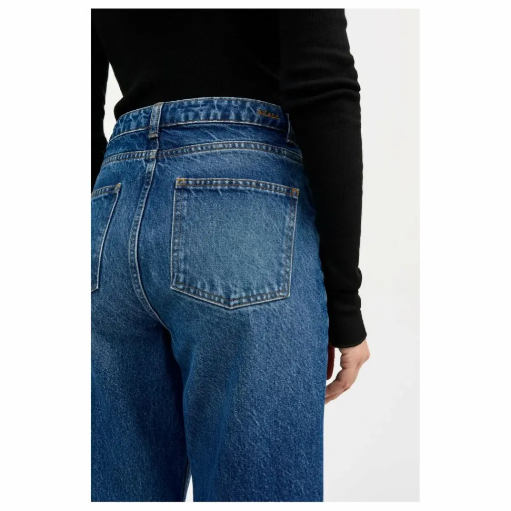 - Jean court Allison en coton biologique de la ligne de denim certifiée GOTS de Skall Studio. Ce jean à jambe droite présente une taille moyenne, un design classique à cinq poches et des passants de ceinture. La longueur est réduite (voir les mesures). Le logo SKALL est brodé à l’arrière de la ceinture – Produit en Turquie