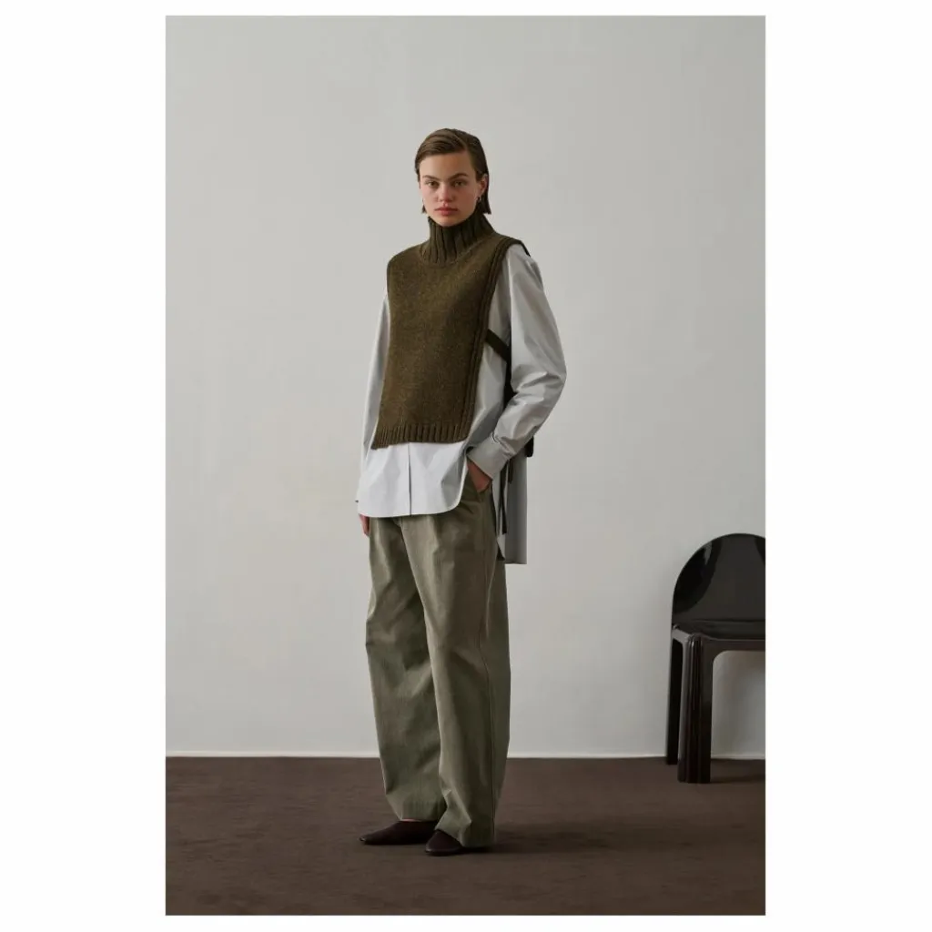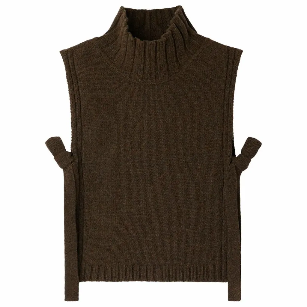 - Plastron col montant en laine ,Coupe droite,Sans manches,Col montant,Liens de serrage sur les côtés,Fintions bords côtes