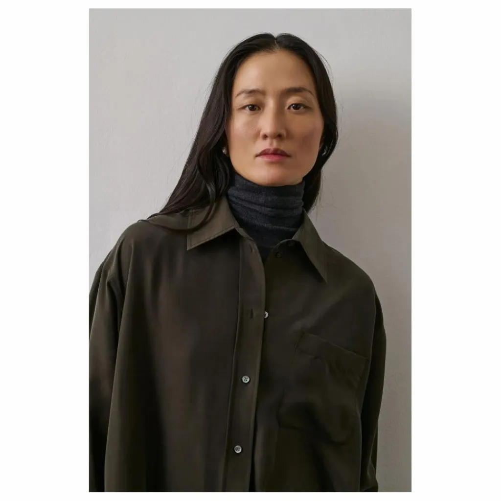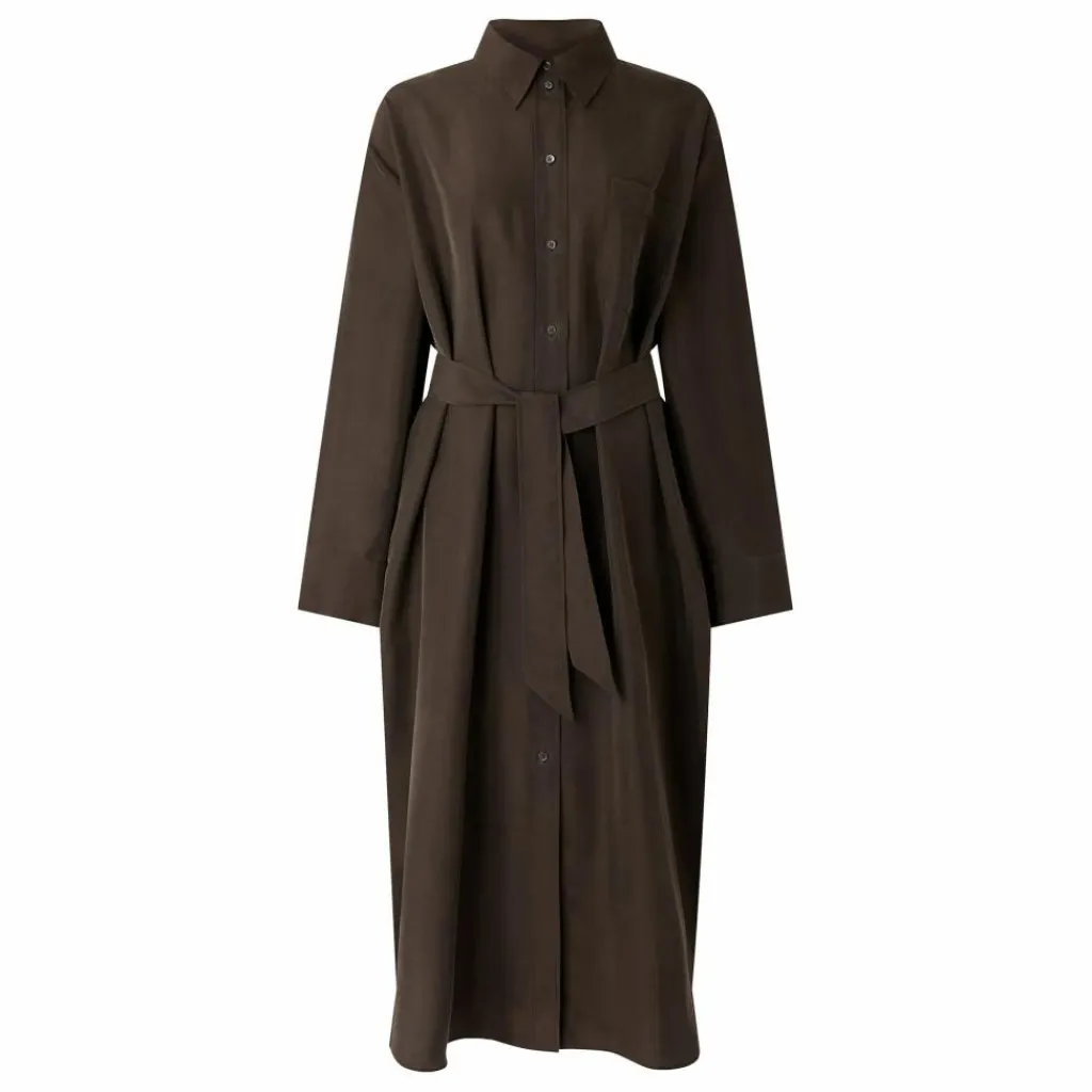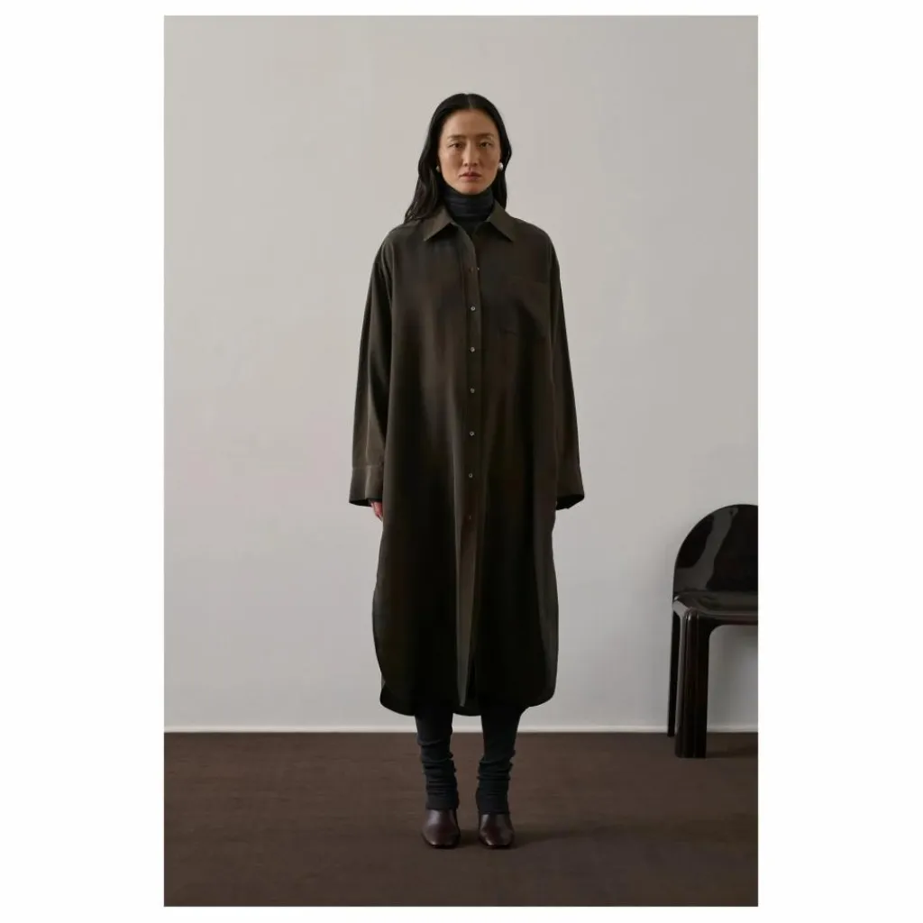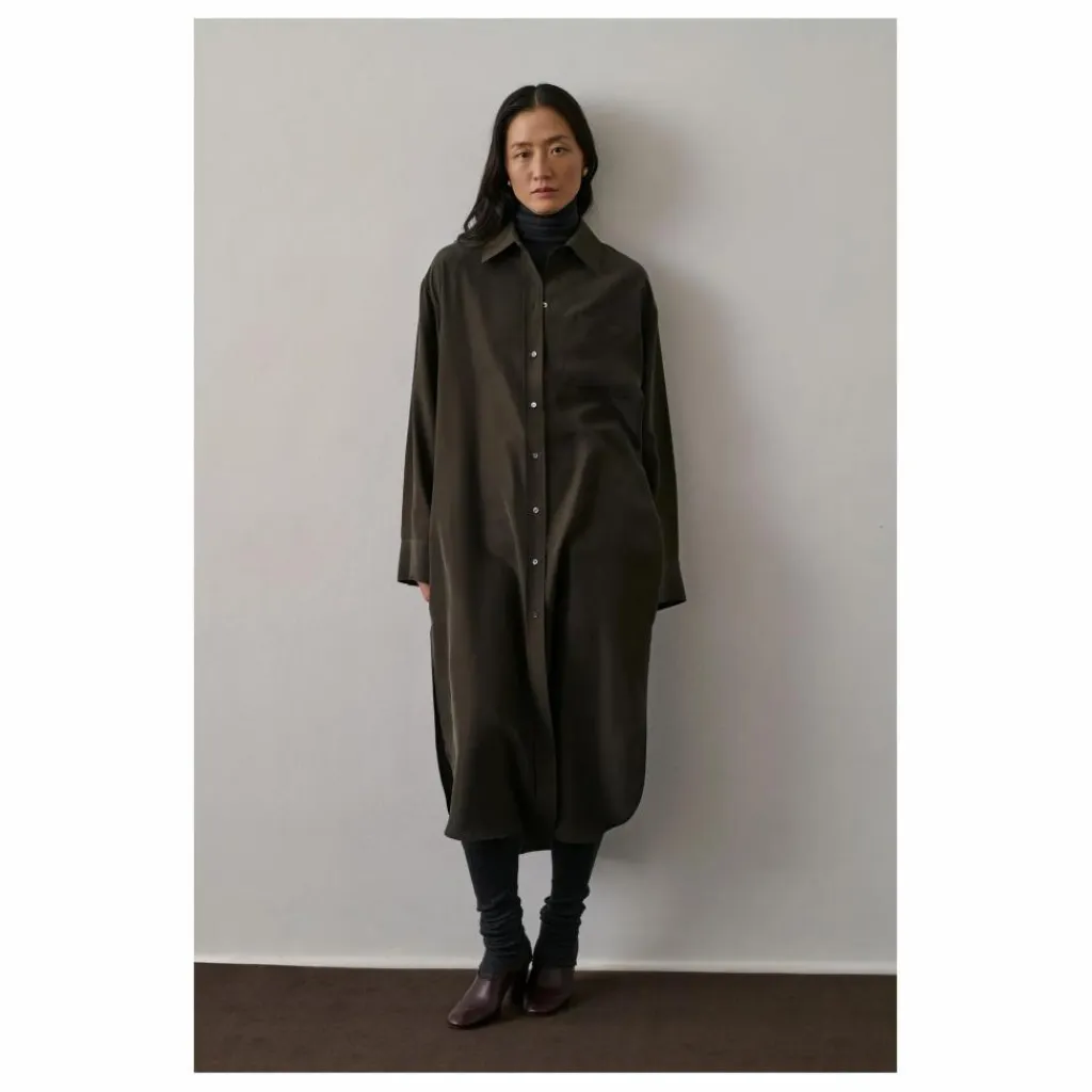 - Robe en soie lavée,Forme chemise, coupe oversize,Longueur cheville,Col chemise,Patte de boutonnahe