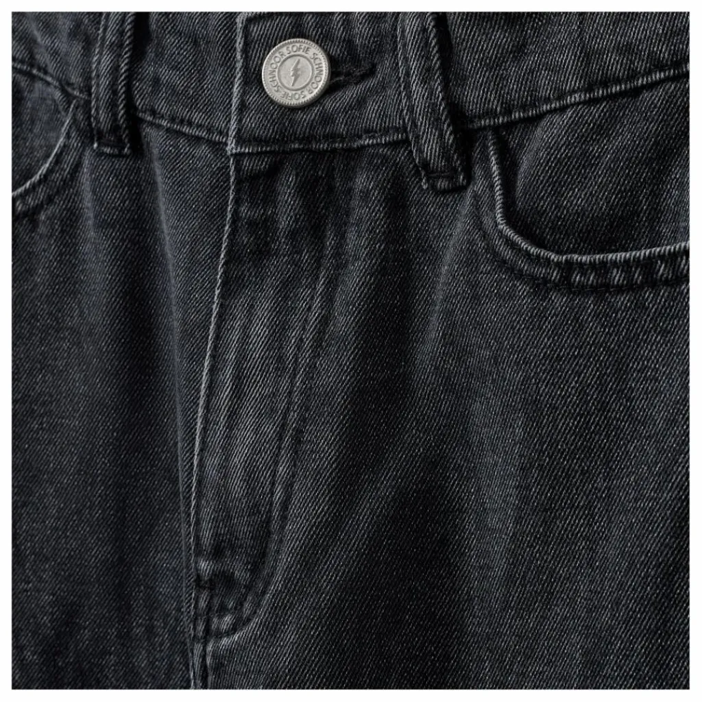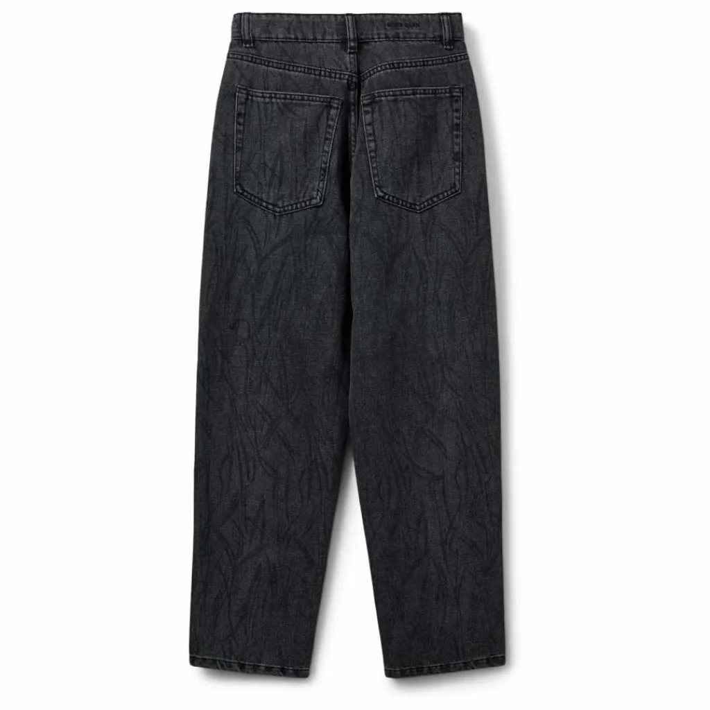 - – Jeans – coupe ample – fermeture à glissière et bouton – passants de ceinture – poches avant et arrière