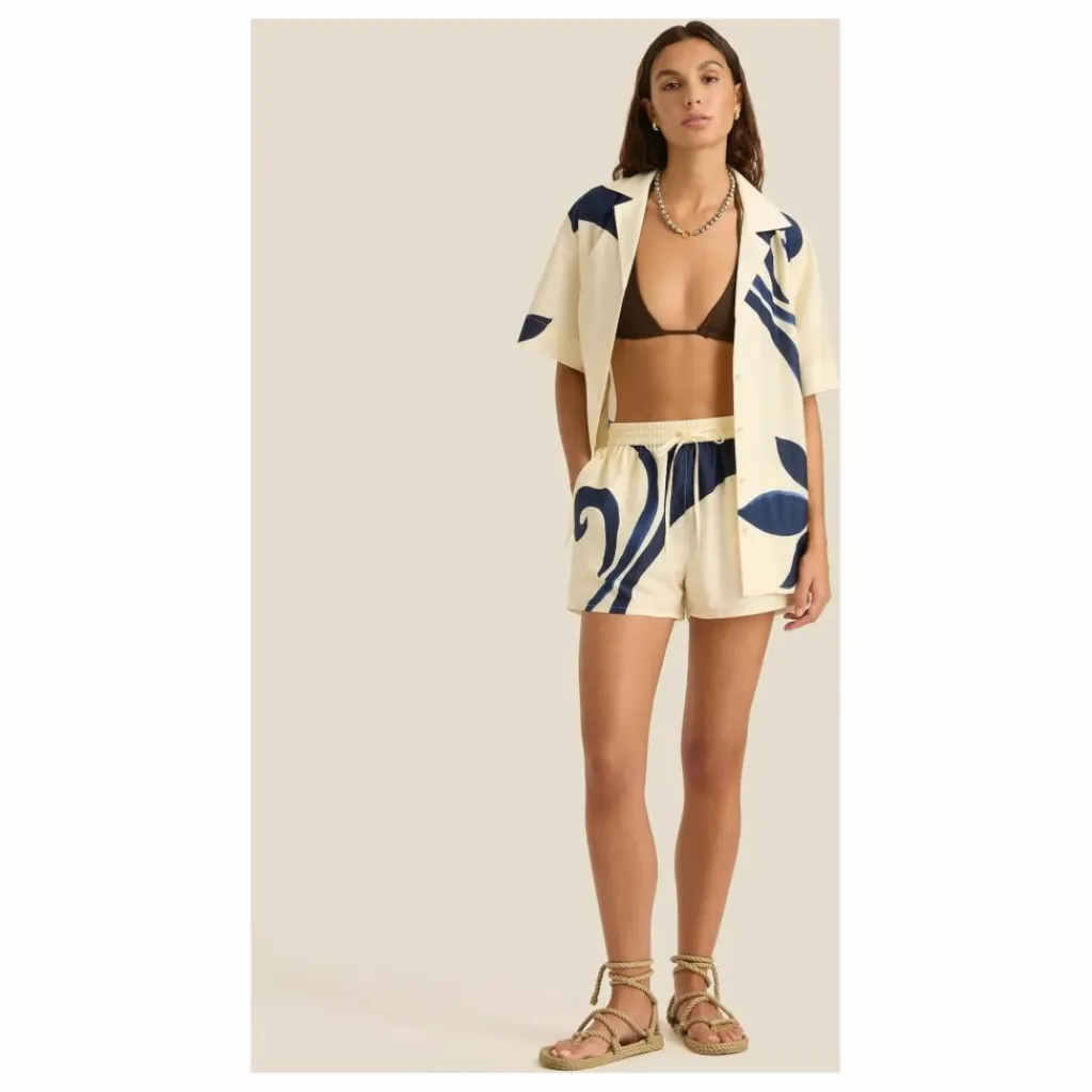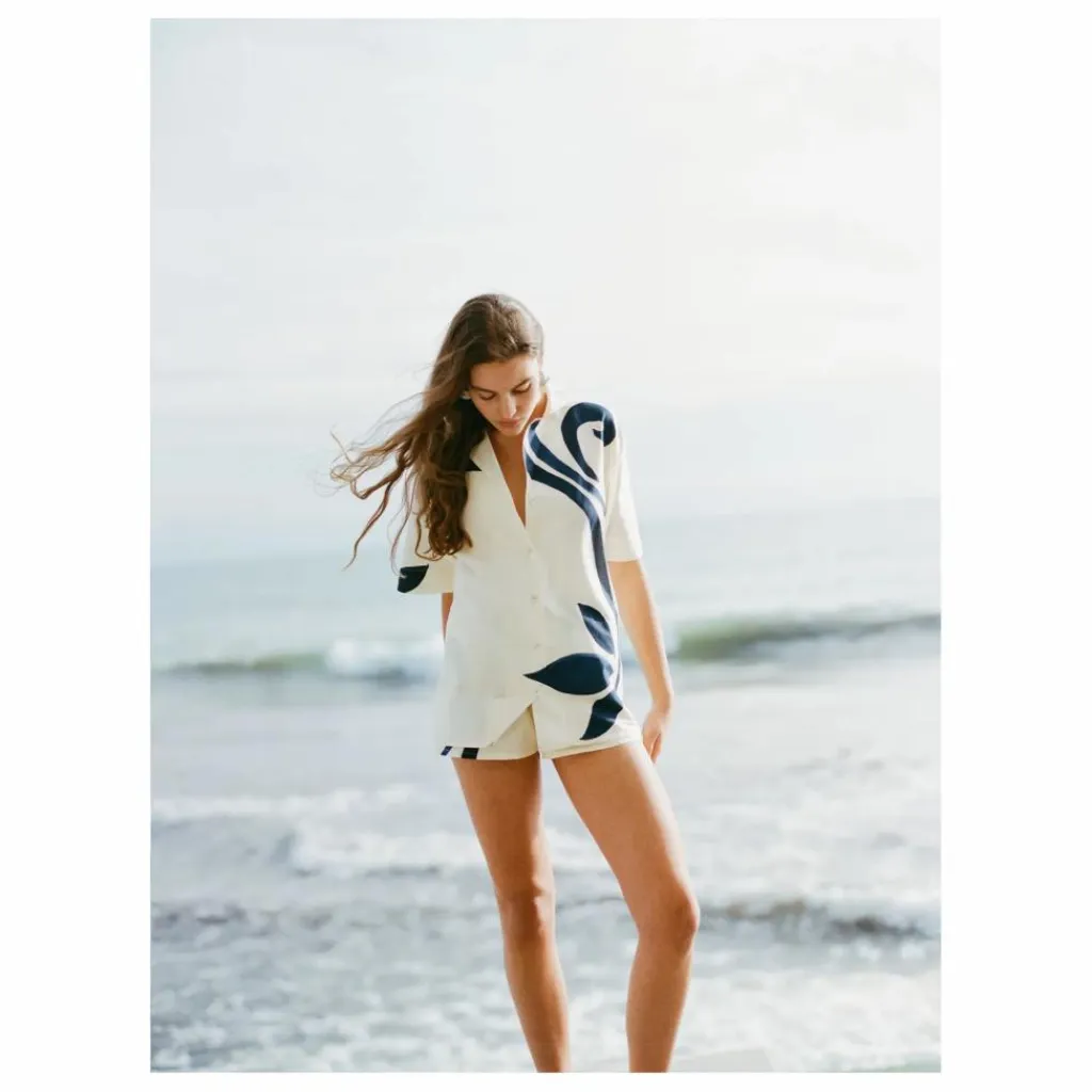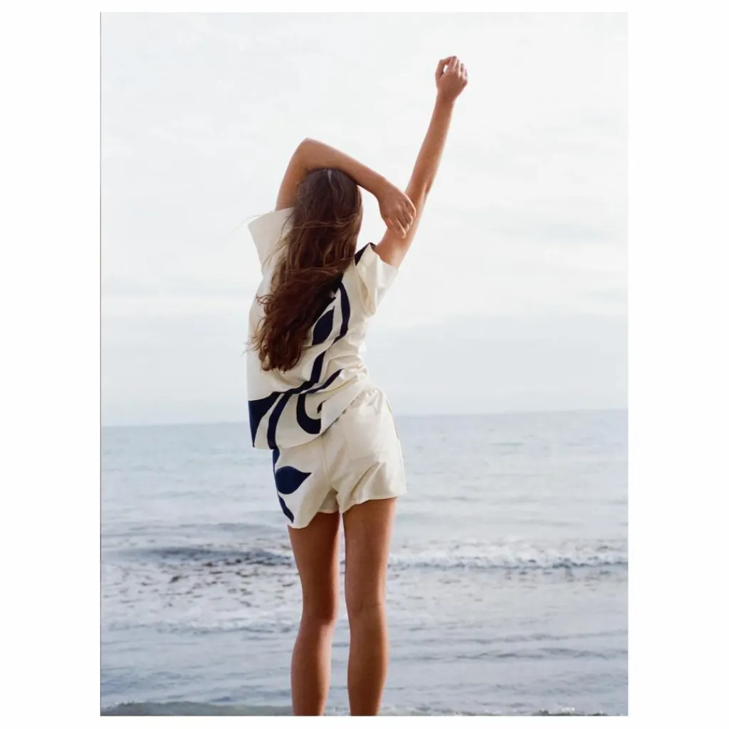- Le Dakota est un caleçon de style boxer à porter partout, doté d’une taille élastiquée et d’un cordon de serrage. Conçu pour être associé sans effort à la chemise Margot assortie de Soleil Soleil, le short ‘Dakota’ est un short à porter partout, avec une taille élastique et un cordon de serrage à nouer. Peint à l’origine à la main à l’aquarelle, ses boucles se déploient comme des roseaux au bord d’un étang.
