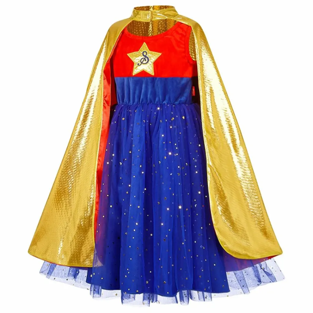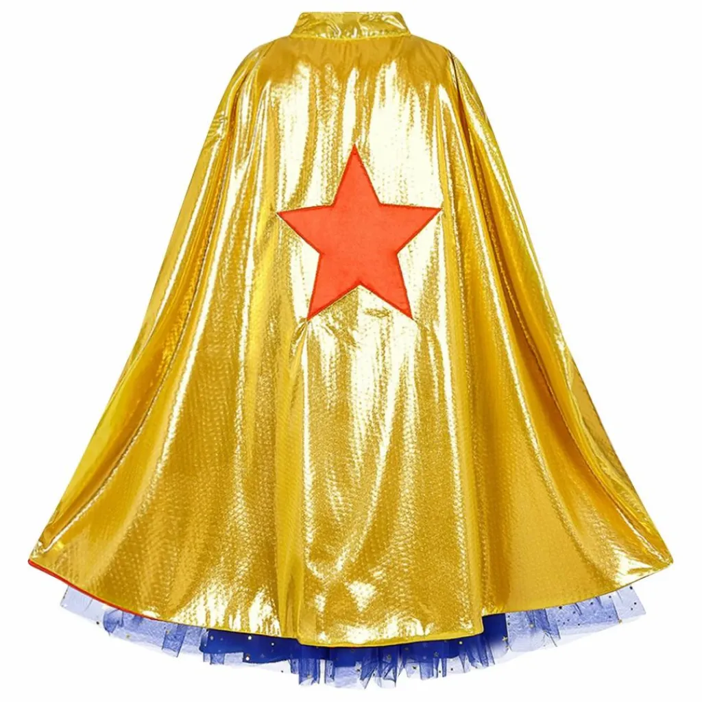 - Incarnez une super-héroïne avec ce déguisement vibrant et coloré, disponible en trois tailles : jupe de 42 cm (3-4 ans), 50 cm (5-7 ans) et 58 cm (8-10 ans). Parfait pour sauver le monde avec style !