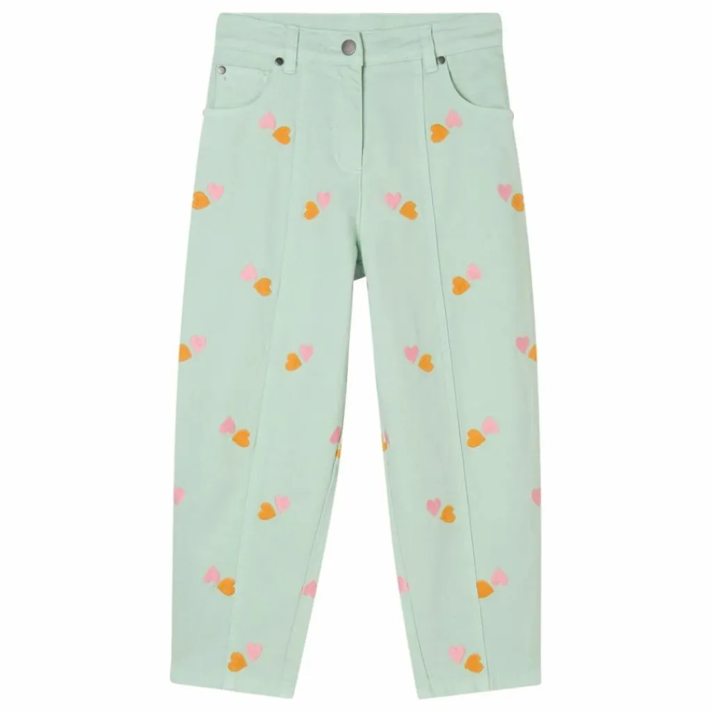 - Pantalon pour fille Baloony Cœurs brodés sur toute la surface Coutures frontales le long de la jambe