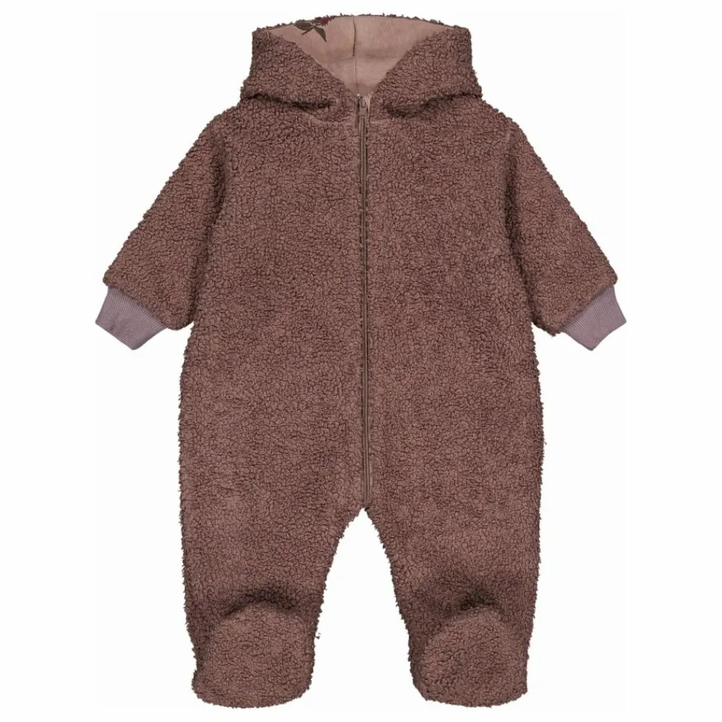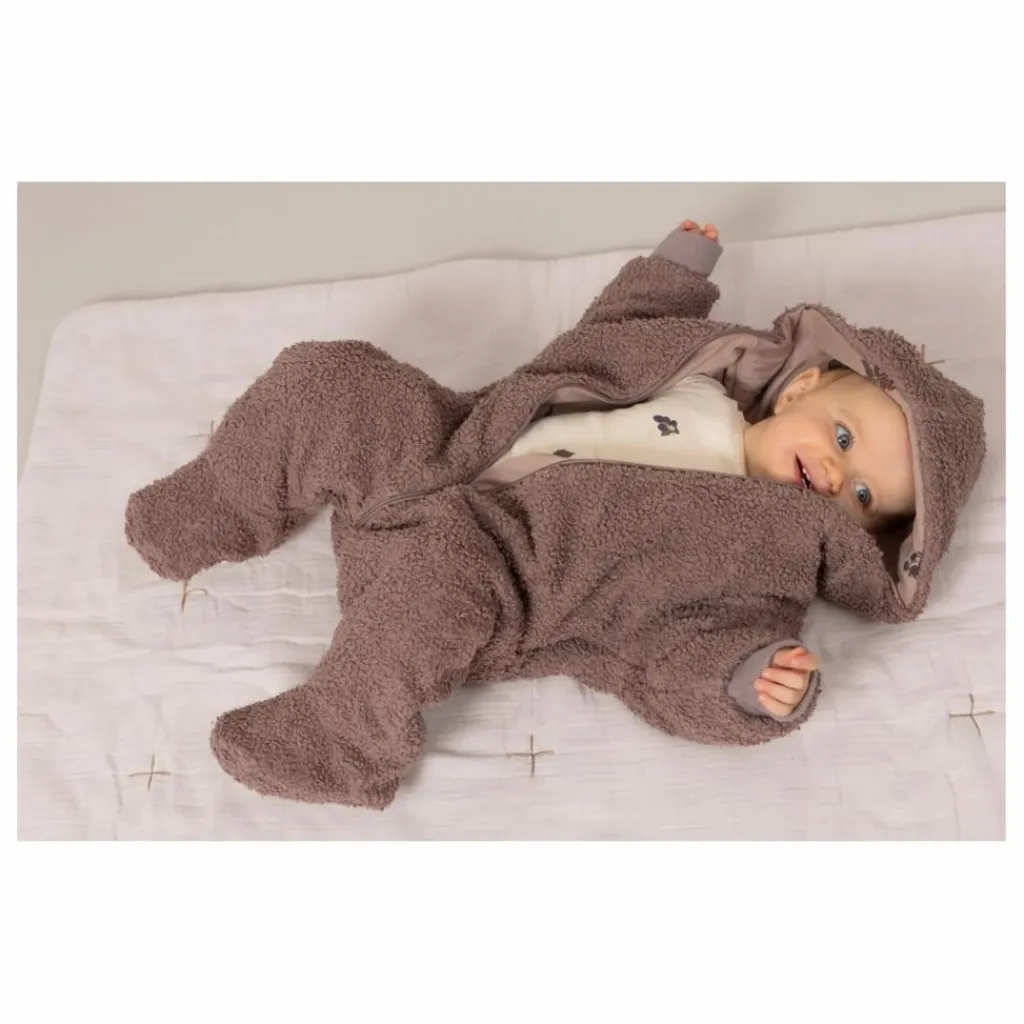 - Combinaison pilote pour les bébés en matière mouton, entièrement doublé. Chaud et doublure imprimée à l’intérieur. Manches longues et à pieds, avec une capuche.