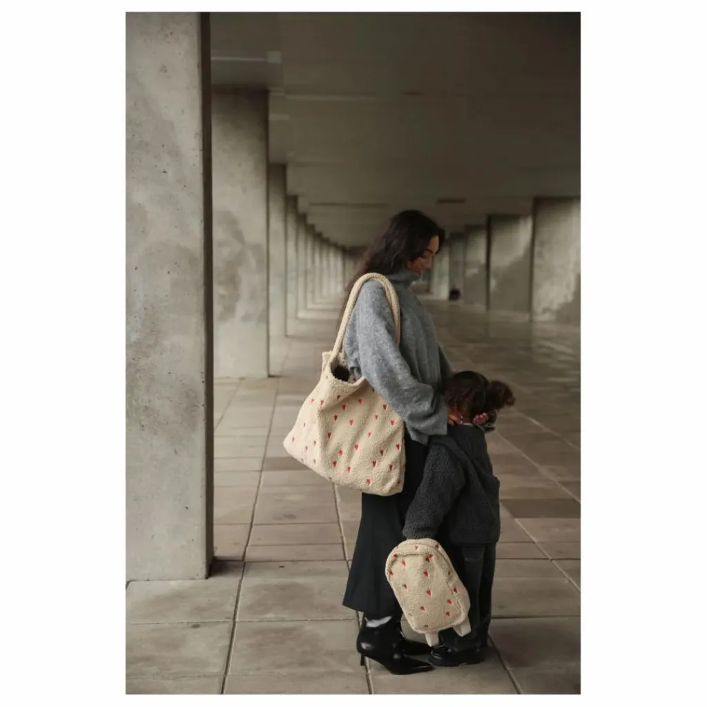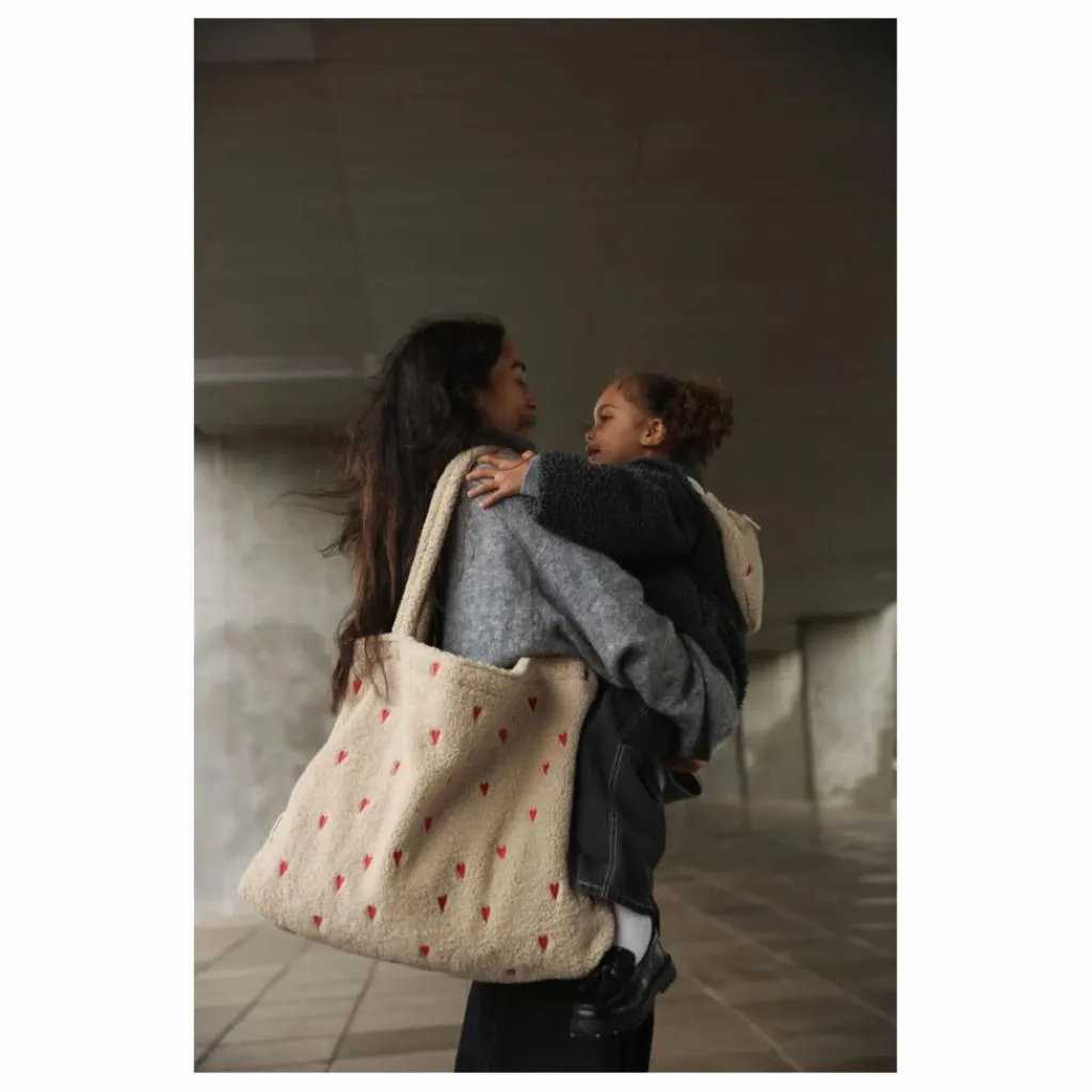 - Voici la dernière nouveauté de notre collection Teddy bien-aimée : les sacs Ecru Teddy Hearts Mom Bags. Ce modèle apporte une touche d’amour à notre style intemporel, avec des cœurs délicatement brodés. Portez l’amour avec vous, où que vous alliez.
