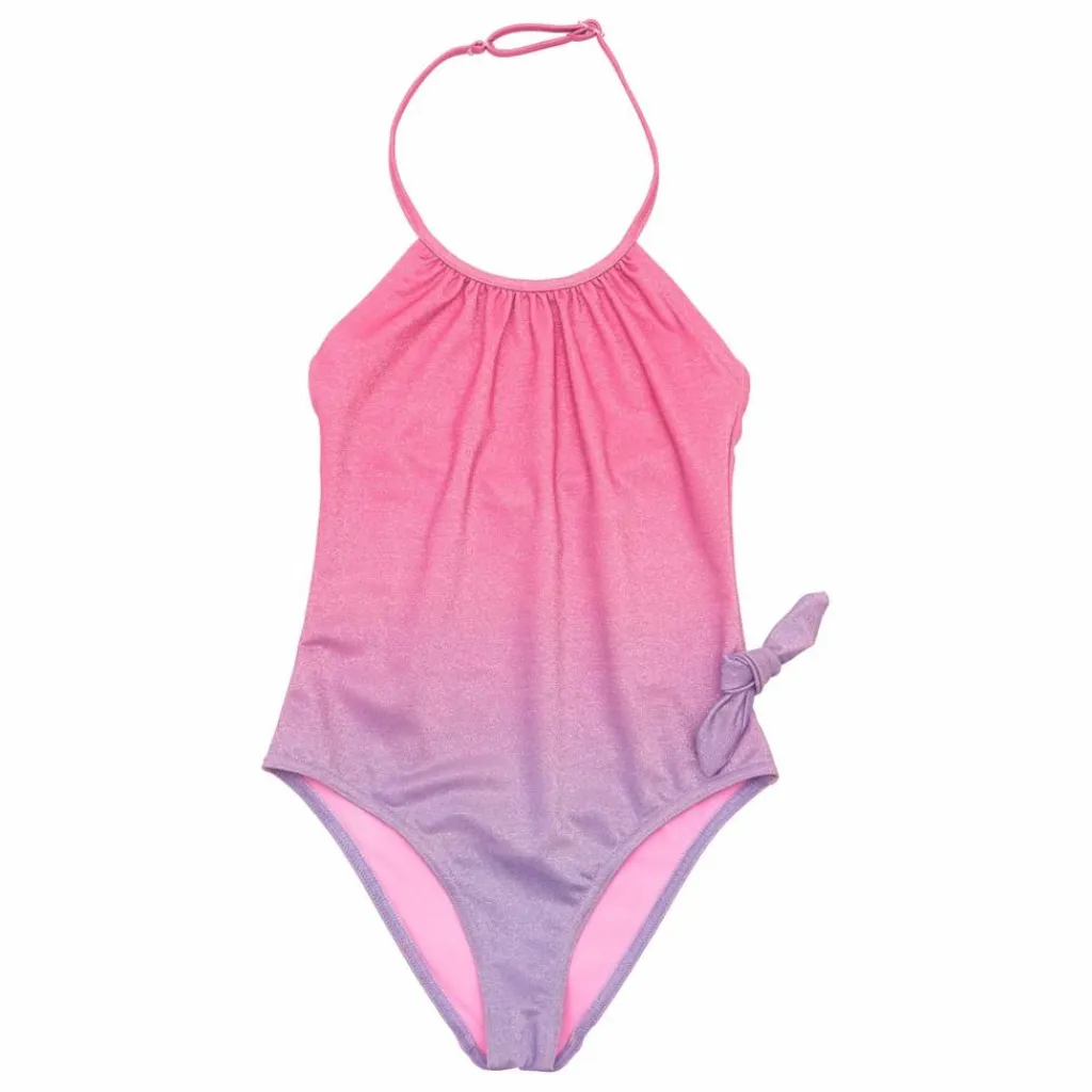 - Ce maillot est conçu pour les petites sirènes qui veulent briller au soleil avec style. Son joli dégradé de rose et de violet rappelle les plus beaux couchers de soleil