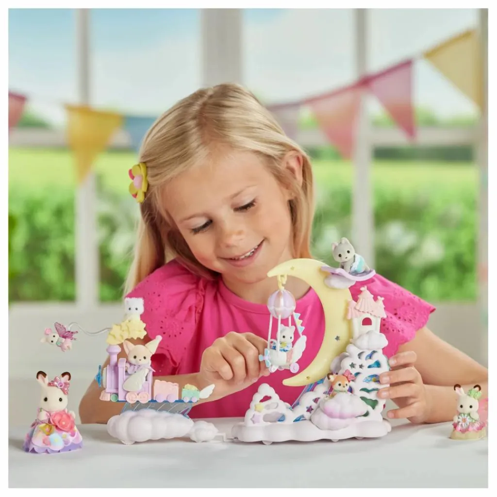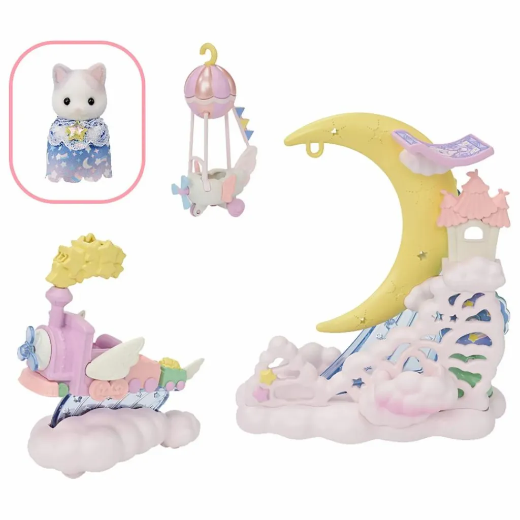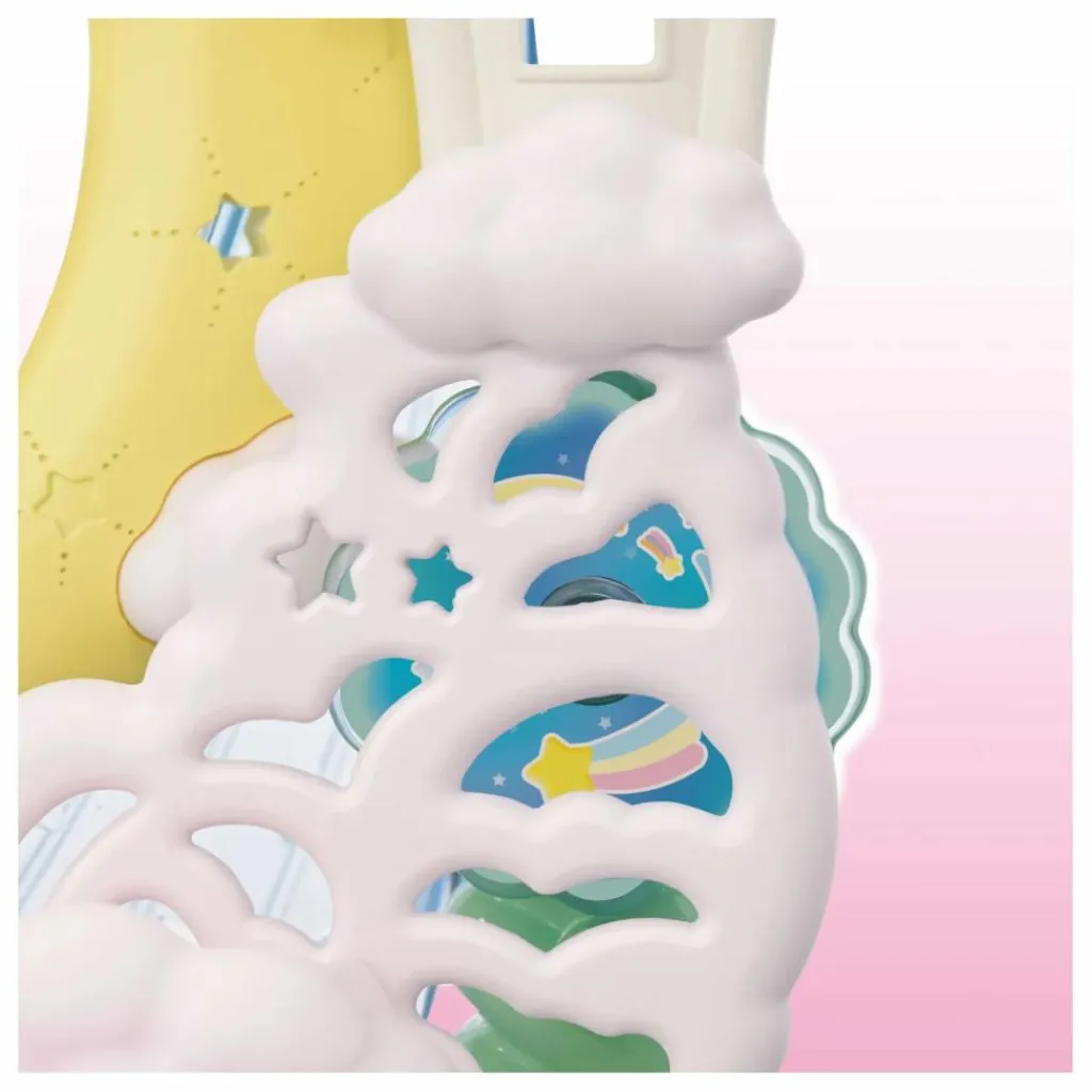 - Le bébé Chat Latté ouvre les portes du monde des rêves. Connecte le train et la lune pour les faire rouler ensemble, ou joue séparément avec la lune et le train. Tourne la molette pour faire bouger la lune. Le vaisseau du bébé Chat Latté se décroche de la lune et peut être utilisé séparément. Fais monter et descendre le train autant que tu le souhaites. La parade des rêves contient le bébé Chat Latté.