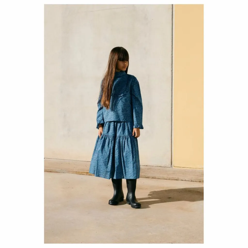 - Blouse à encolure ras du cou en coton Liberty. Coupe décontractée, encolure volantée, manches volumineuses et poignets volantés, boutonnée au dos. Doublée.