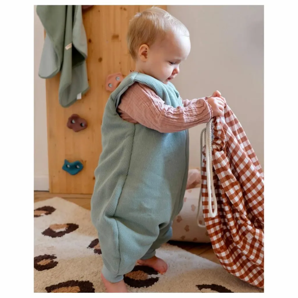 Cette gigoteuse à pieds retroussables permet à bébé de dormir paisiblement et chaudement, tout en pouvant marcher avec pour sortir du lit, en surpyjama.