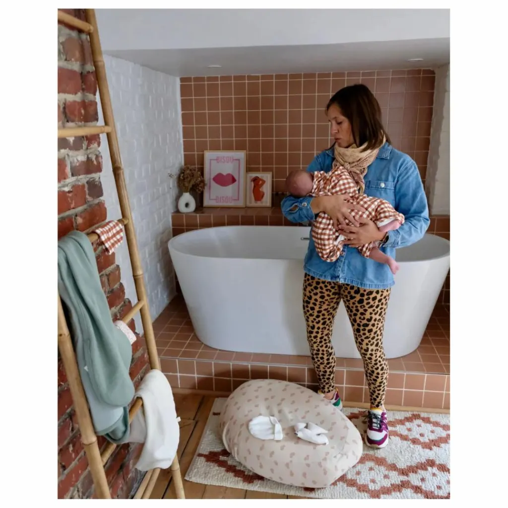 Dans l’optique de donner une seconde vie au coussin d’allaitement, cette housse a été conçue pour que vous puissiez poser votre bébé sans qu’il ne glisse entre les deux boudins.