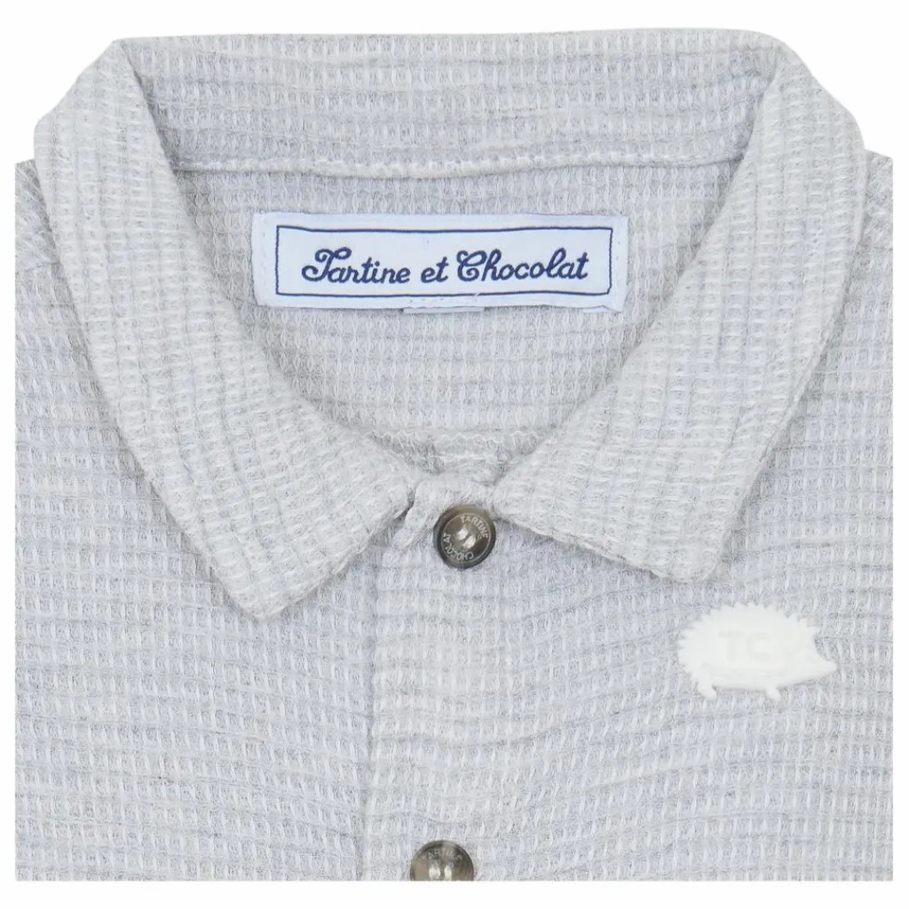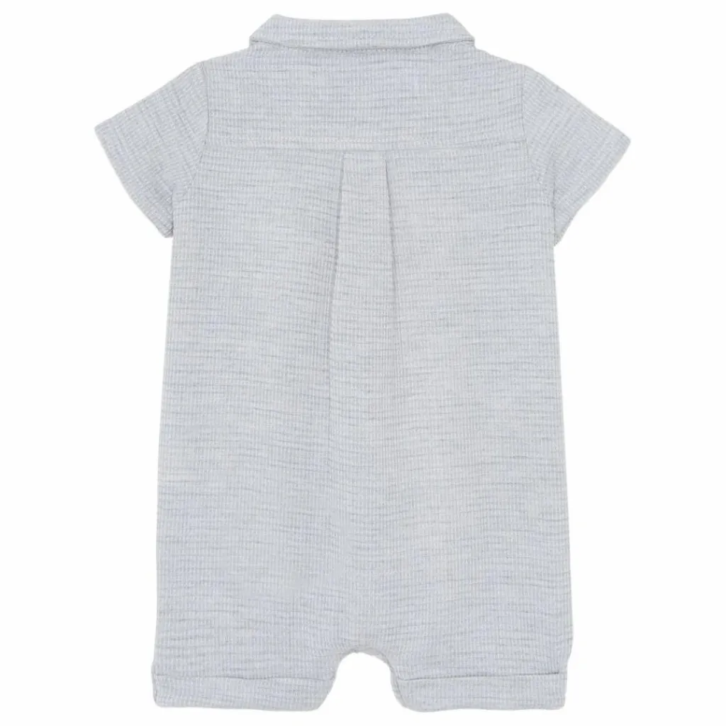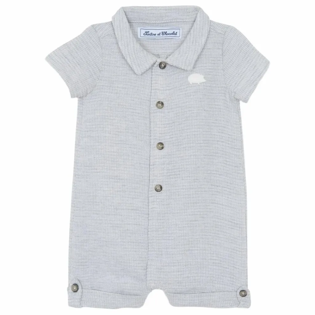- Cette combinaison courte en maille éponge gris chiné pour bébé garçon est ornée d’un motif TC en forme de hérisson pour une touche ludique. Avec son col pointu et ses boutons pratiques à l’avant, elle allie confort et style, idéale pour les journées décontractées. CA33101-20