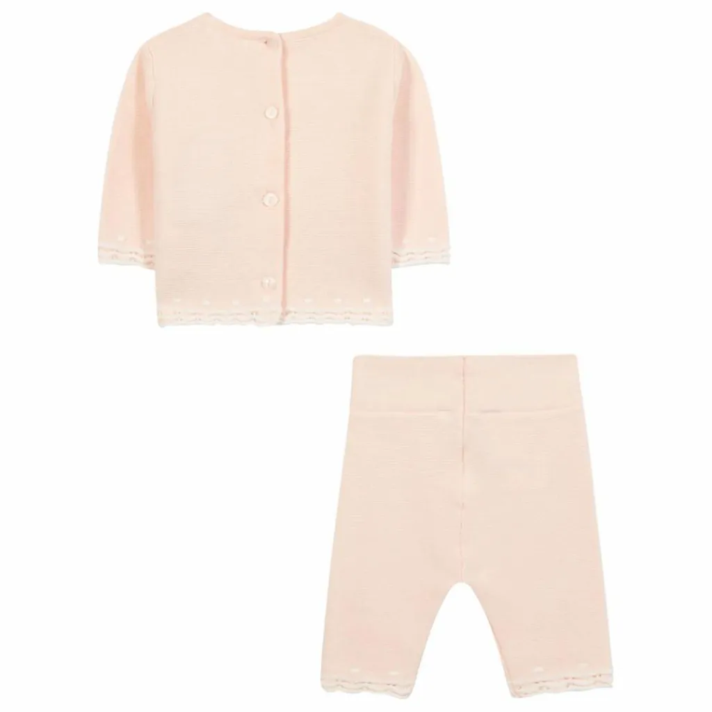 - Cet ensemble rose pâle en coton est idéal pour le « premier trousseau fille » ! Le gilet à manches longues avec ouverture à boutons et finition festonnée ajoute une touche de douceur et d’élégance. Complété par un bas élastiqué, il offre confort et style pour les premiers jours de bébé fille. À associer avec une petite robe en coton pour une tenue complète et charmante.
