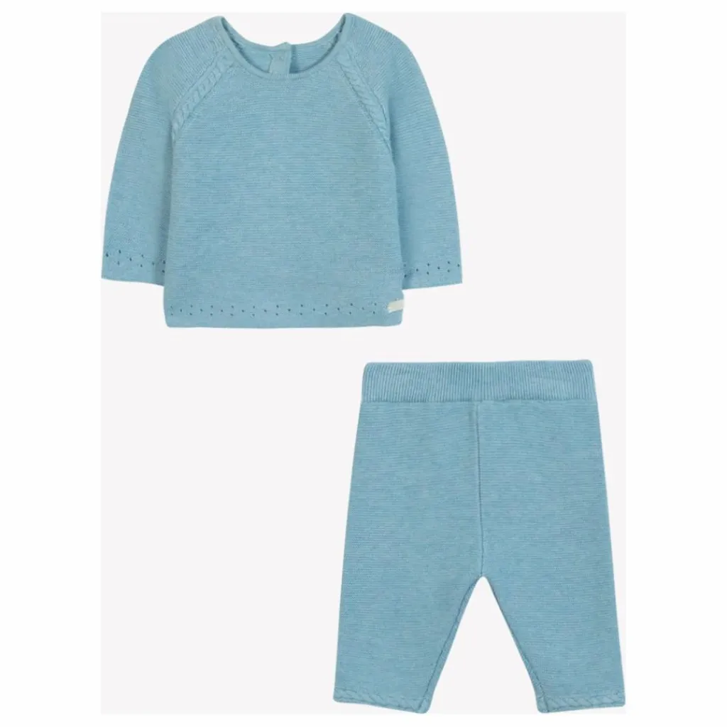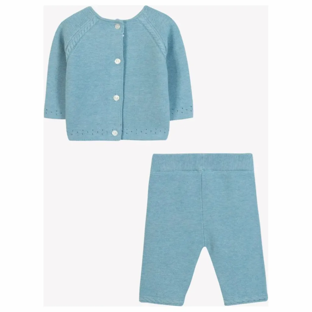 - Cet ensemble long en coton bleu horizon est le choix idéal pour le premier trousseau de votre petit garçon. Avec son détail de maille torsadée et ses finitions ajourées, il apporte une touche d’élégance à son style. Le col rond et la patte de boutonnage facilitent l’habillage tout en ajoutant du charme. À combiner avec des chaussons doux pour un look complet !