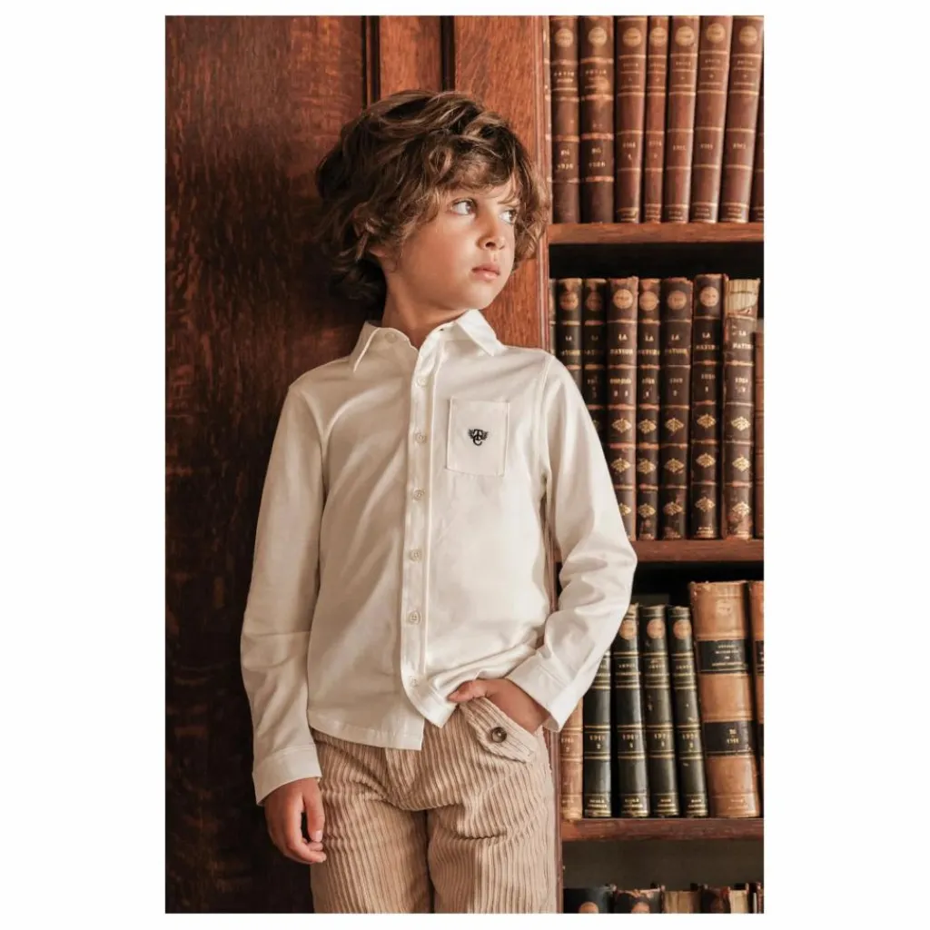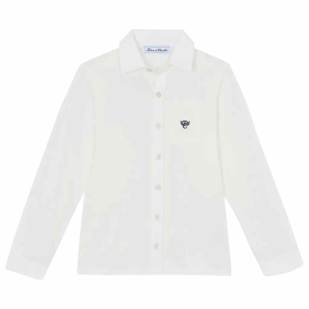 - Cette chemise pour junior garçon, en coloris écru, se distingue par son allure épurée et intemporelle. Sa poche plaquée sur le devant est subtilement rehaussée du monogramme TC, apportant une touche discrète de raffinement. Confectionnée avec soin, elle allie confort et élégance pour accompagner les petits garçons en toutes circonstances, avec style et simplicité.
