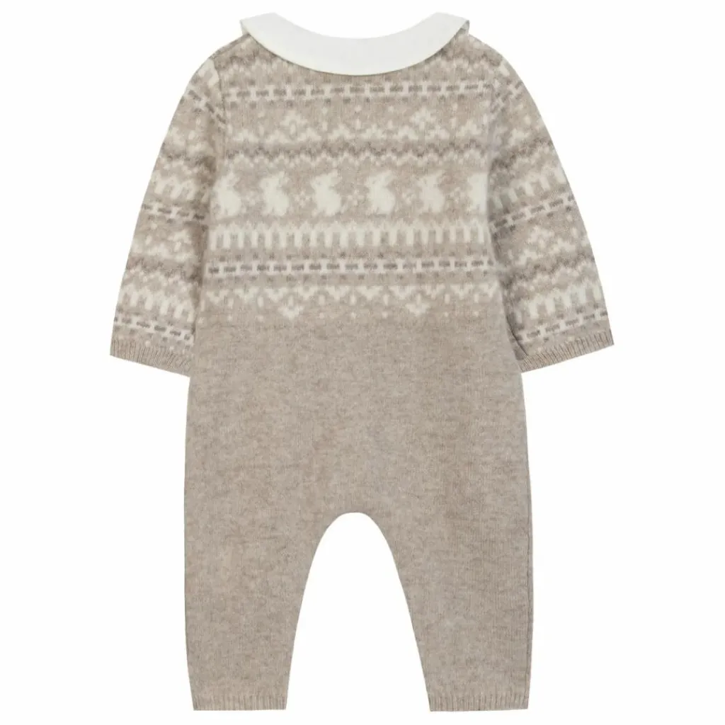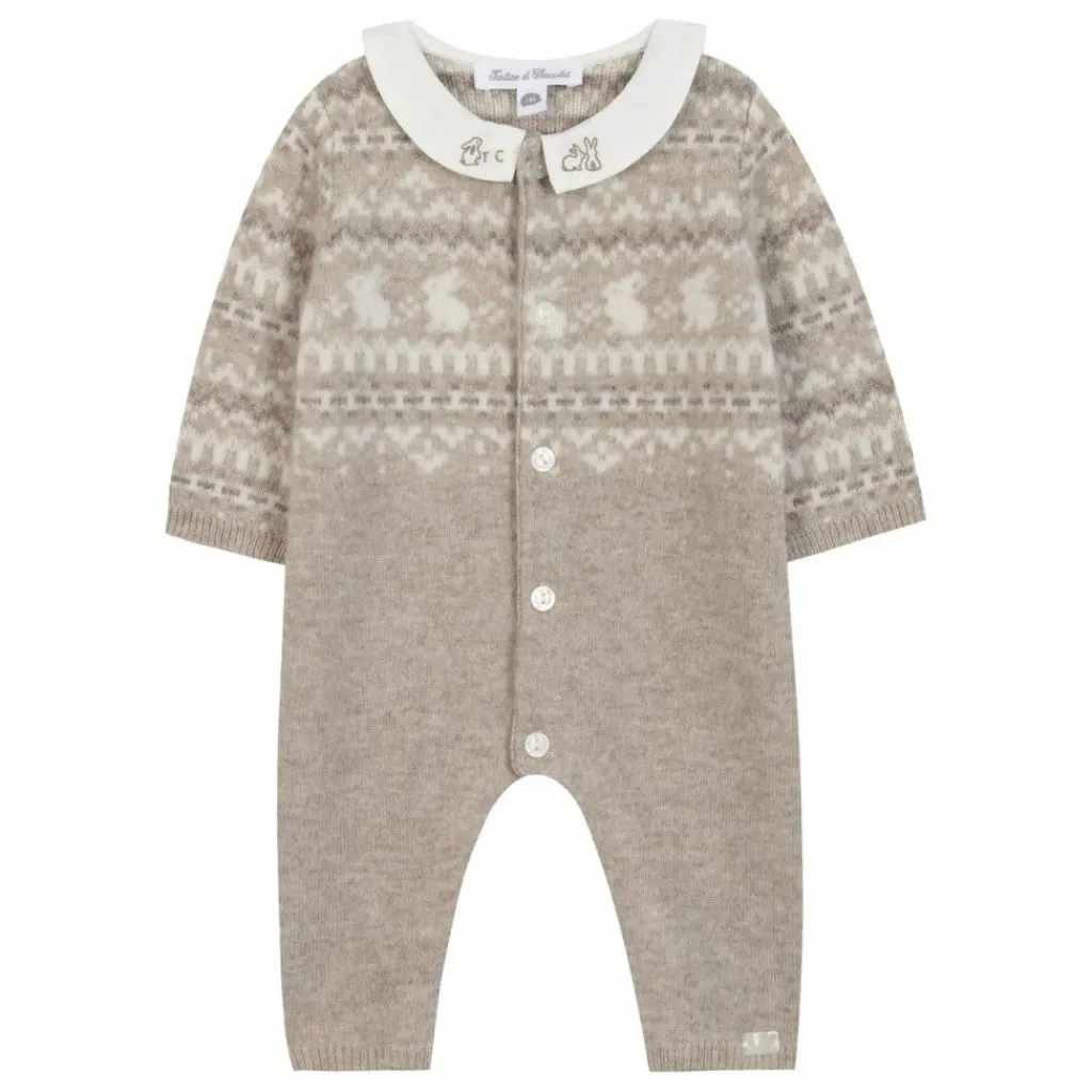 - Cette combinaison longue pour naissance garçon, en coloris greige chiné, est ornée d’un motif jacquard délicat. Elle présente un col pointu avec une broderie lapin et la signature TC brodée sur le dessus, alliant élégance et douceur pour un confort optimal dès les premiers jours.