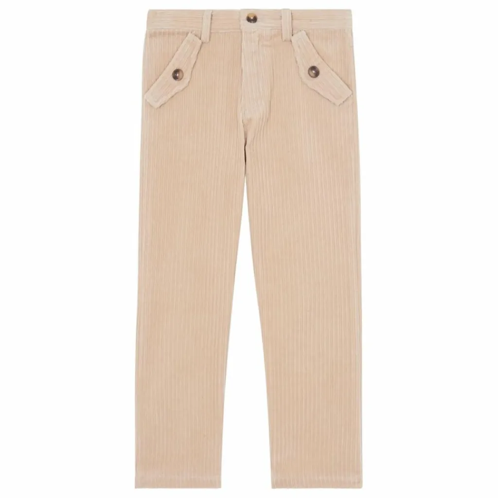 - Ce pantalon pour junior garçon, en coloris beige, est confectionné en velours, offrant à la fois confort et élégance. Les détails de boutons ajoutent une touche sophistiquée à ce modèle, idéal pour des tenues à la fois modernes et stylées.