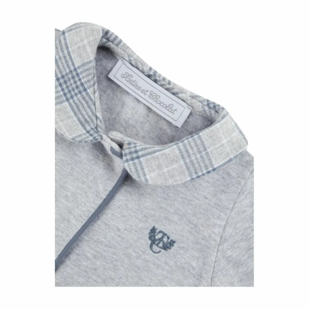 On craque pour cet adorable pyjama bleuet signé Tartine et Chocolat au col en Twill de coton. Ce détail chic et moderne revisite le carreau traditionnel sur un twill de coton. Idéal pour un petit garçon, l’imprimé Twill de coton perpétue les souvenirs si chers à l’enfance. La matière très douce et réconfortante rappelle la flanelle tout en gardant la légèreté du coton.