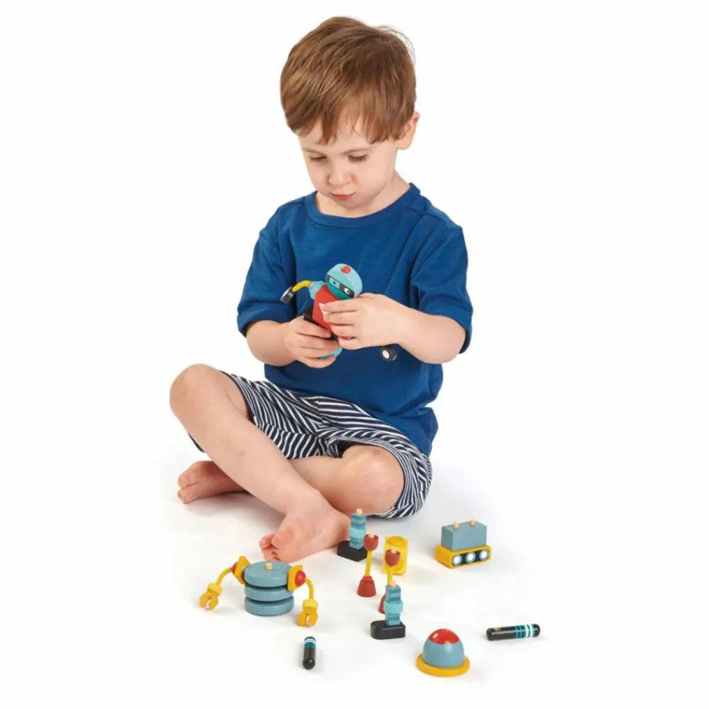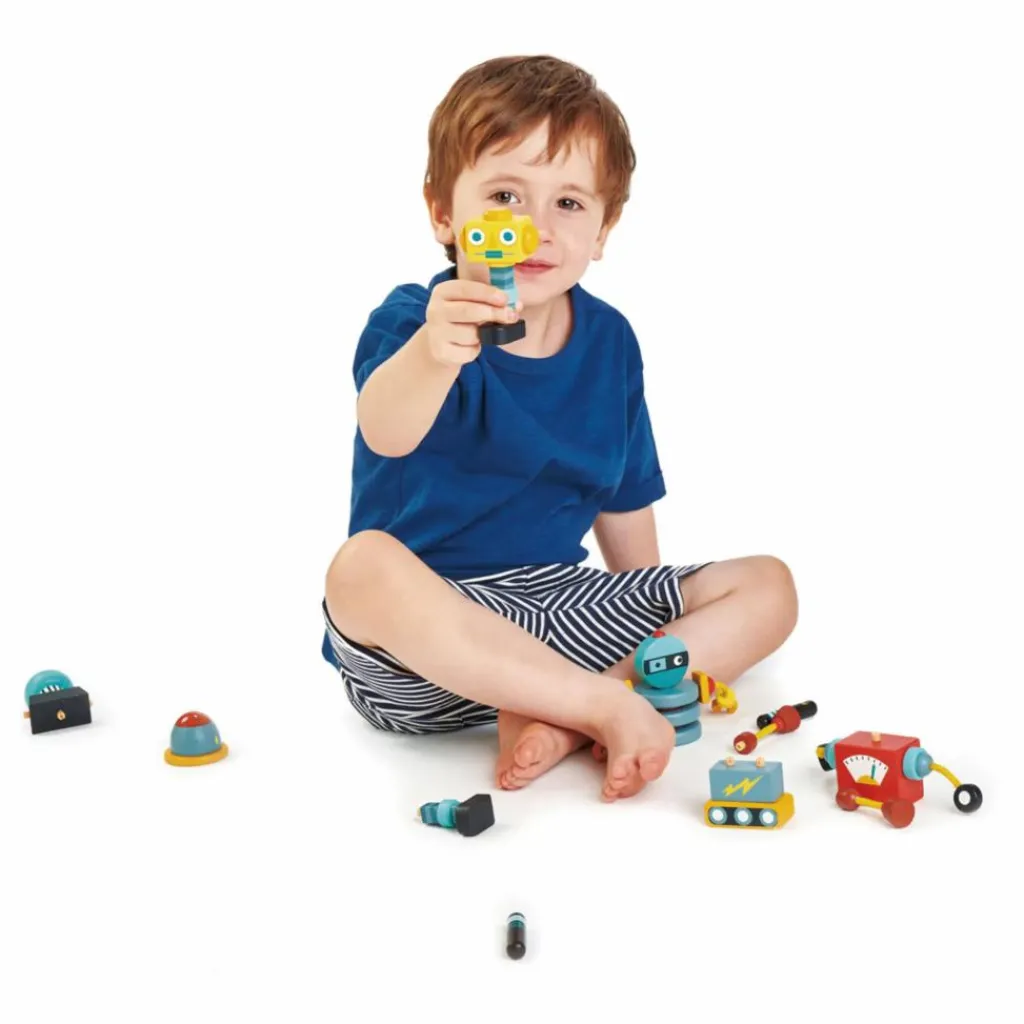 Ces trois robots aux couleurs vives se démontent tous pour pouvoir être reconstruits de différentes manières pour en faire un jeu créatif original.