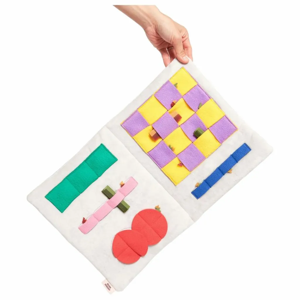 - Cachez les friandises invisibles dans le tapis à carreaux entrelacés. Dimensions 41 cm × 27 cm × 2 cm