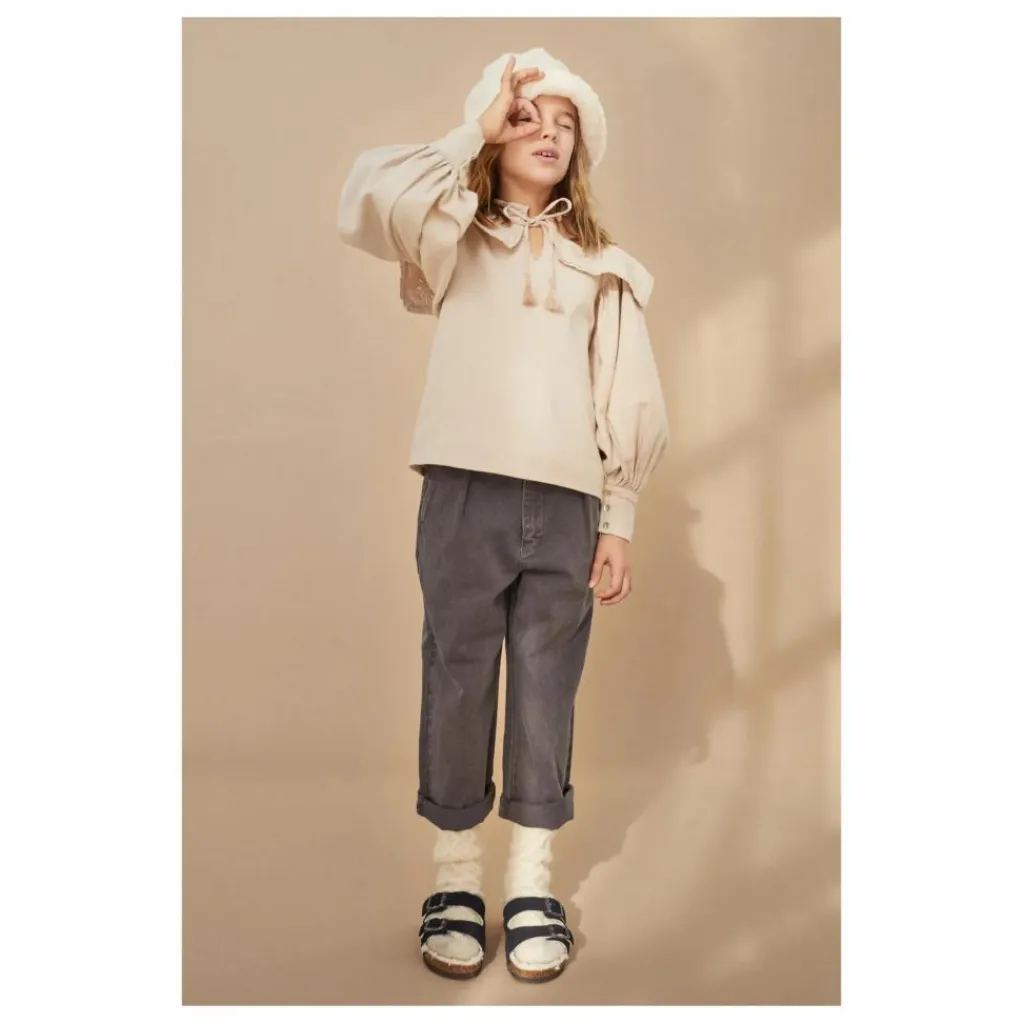 - Resserré aux poignets, Encolure V, Lien(s) à l’encolure, Manches bouffantes, Poignets boutonnés, Poignets froncés, Bordures surpiquées, Ajouré(s), Col volanté
