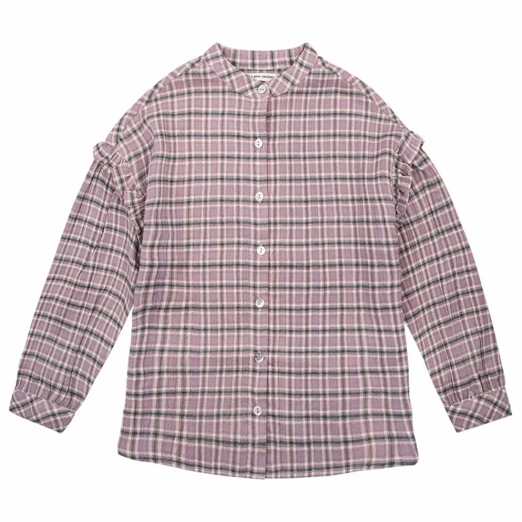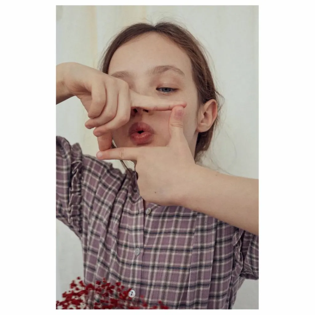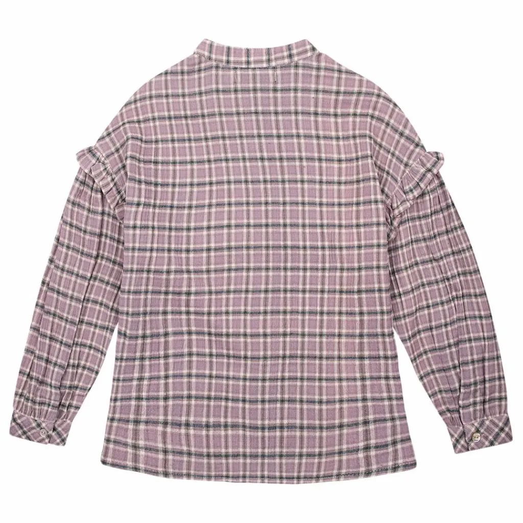 - Détails : Motif à carreaux, Col rond, Manches longues, Emmanchures basses, Poignets boutonnés, Patte de boutonnage, Boutons nacrés, Volants aux épaules