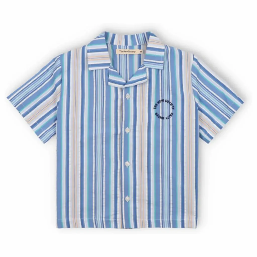 - Chemise Tebas en tissu rayé 100% coton, manches courtes avec boutons de chemise blancs.