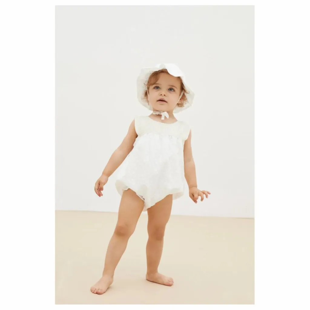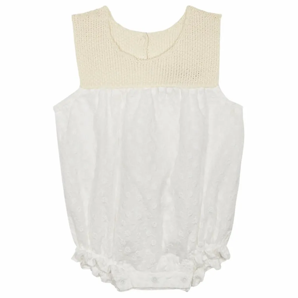 - Broderie ton sur ton, Elastiqué aux cuisses, Encolure ronde, Bi-matières, Bords volantés