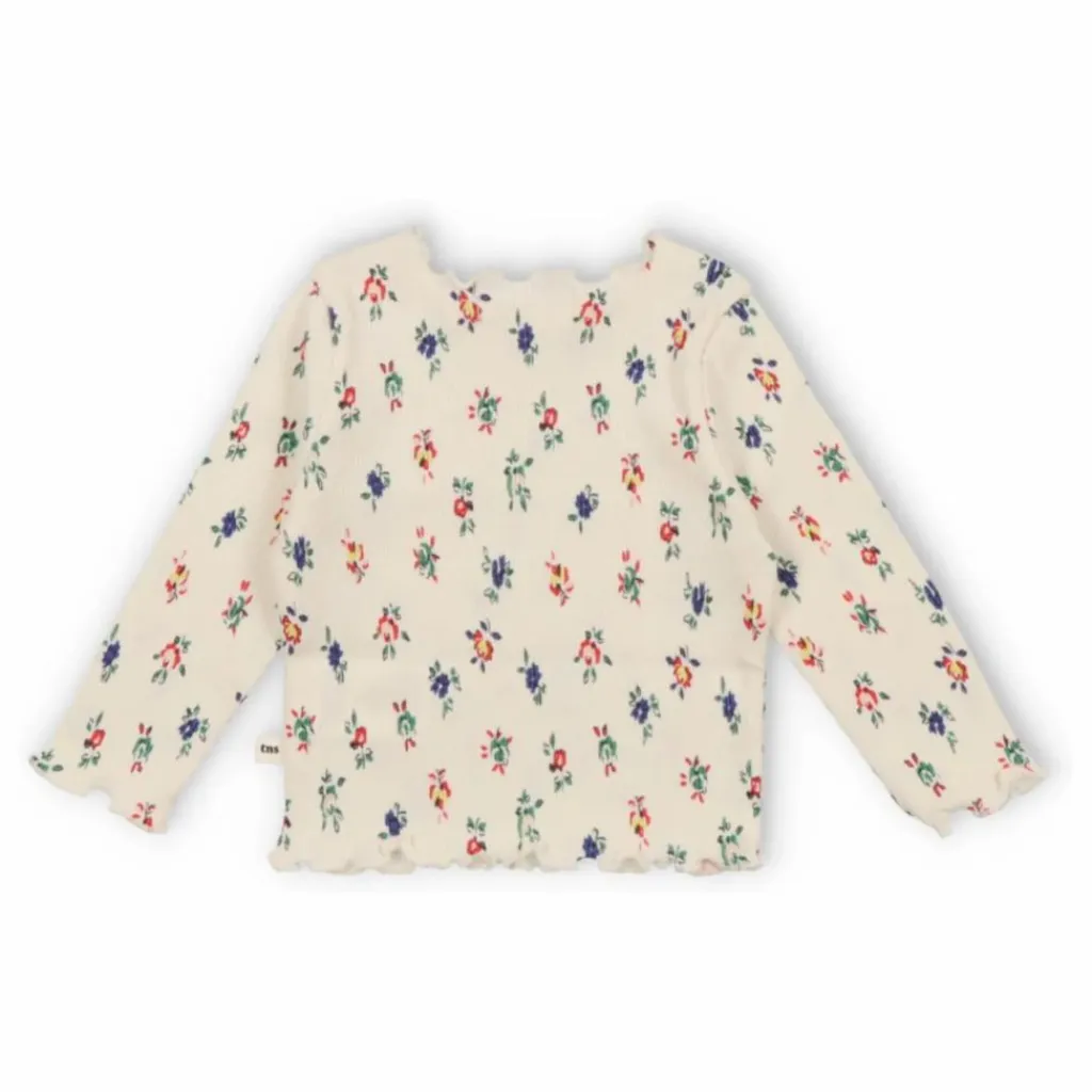 - T-shirt à manches longues en côtes, imprimé de fleurs de vanille, col rond et broderie « TNS » sur la poitrine. Parfait pour combiner avec l’ensemble assorti. Fabriqué avec du coton BCI, une fibre durable garantissant la culture et la traçabilité.