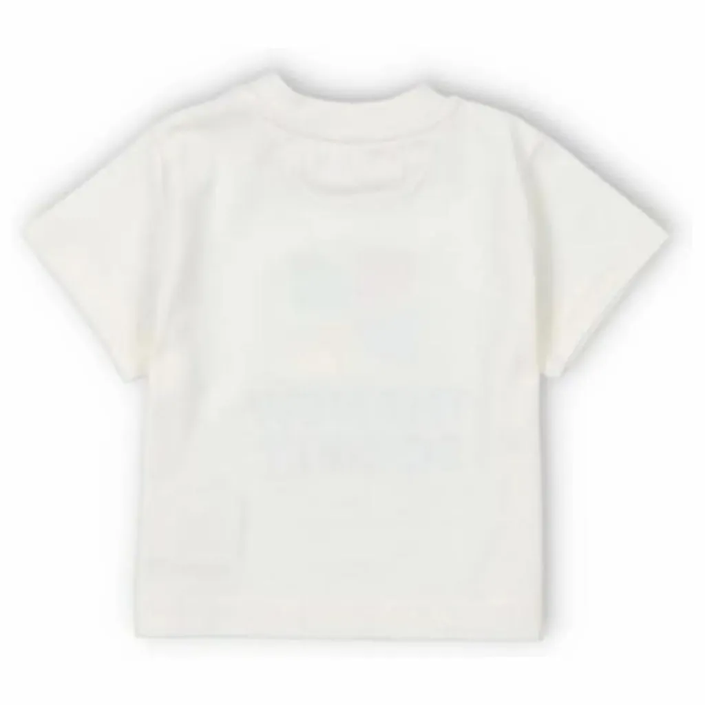 - T-shirt à manches courtes et épaules tombantes avec logo coloré sur le devant et ouverture des épaules par boutons-pression ton sur ton.