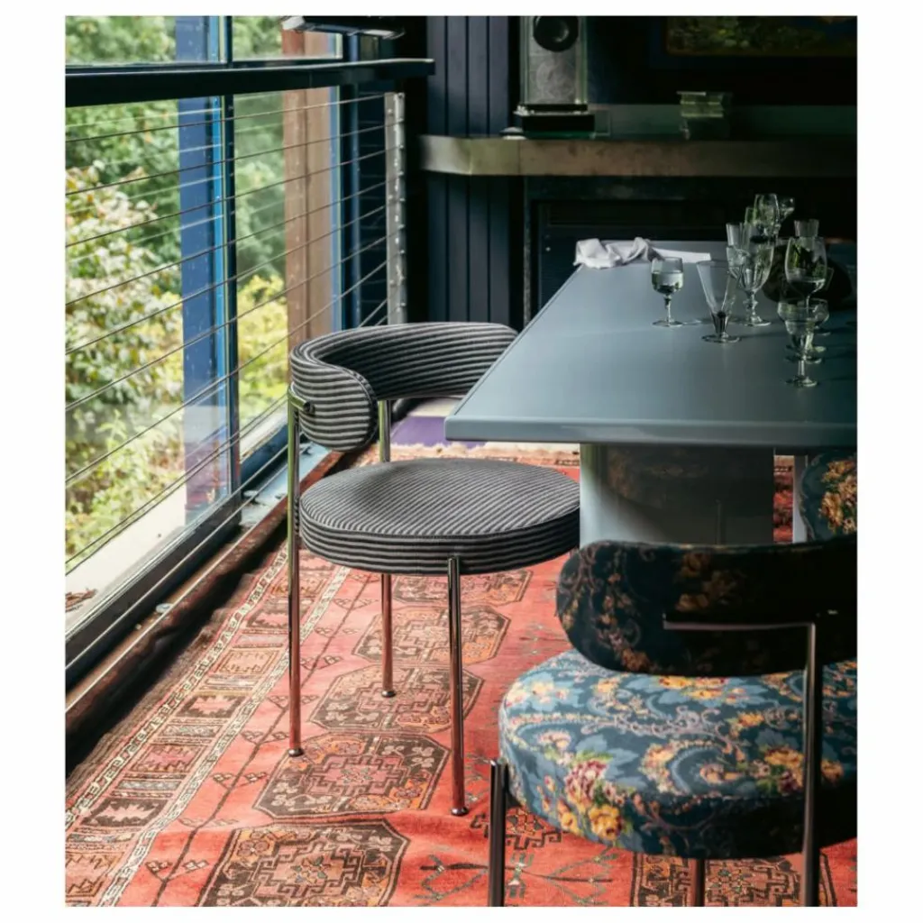 - Couleur de l’assise : rayé bleu nuit et gris.