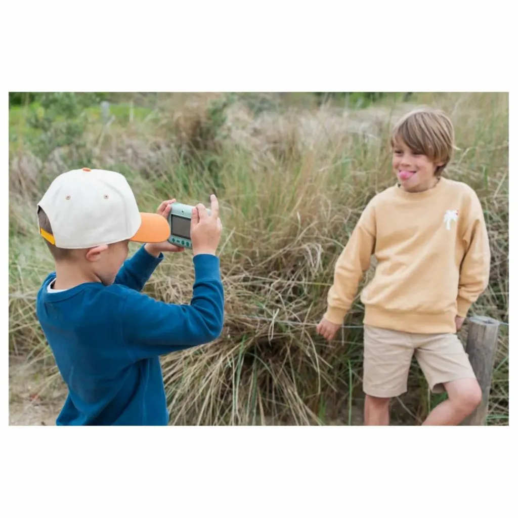 - Appareil photo numérique 4,8MP (48MP interpolé) Taille de l’appareil photo 12 x 9 x 5 cm Age de 5 à 11 ans Ecran couleur de pointe 3 pouces Vidéo, impression et appareil photo en un. Collier Selfie camera 2in1 et câble de chargement inclus. 3 x rouleaux de papier inclus, permettant d’imprimer jusqu’à environ 225 photos Léger, facile à utiliser et durable. 20+ cadres photo amusants et autocollants. Carte mémoire 32 GB incluse, pouvant contenir 2000 photos ou 4h de vidéos. Batterie rechargeable de 1500mAh. Jusqu’à 2 heures d’utilisation continue. Multilingue