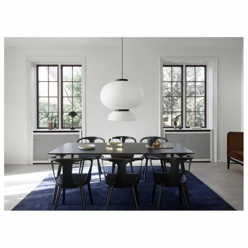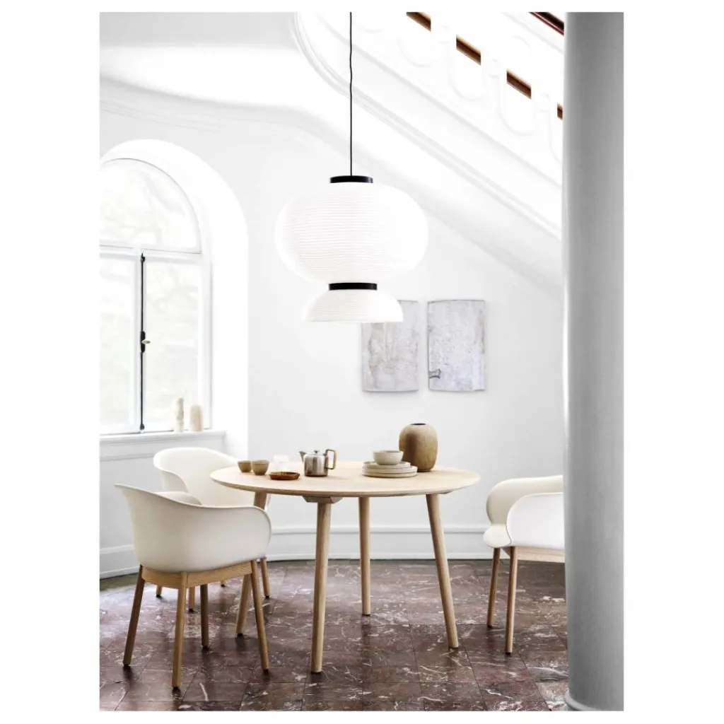 La série Formakami est composée de trois versions différentes en papier de riz blanc ivoire avec des accents de chêne teinté en noir. Chaque suspension ne pesant qu’un kilo, elles se suspendent délicatement dans n’importe quel décor d’intérieur, faisant écho à d’anciennes lanternes d’Asie.