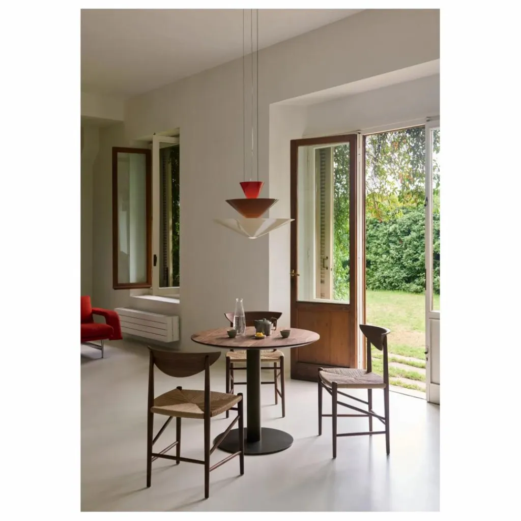 - S’inspirant du lustre Murano de Gio Ponti, le lustre Gio transmet la même expression saisissante tout en se concentrant sur les formes géométriques fondamentales et les combinaisons de couleurs vibrantes. Un design minimaliste avec une présence impressionnante, le lustre célèbre l’union des formes classiques et contemporaines en une seule déclaration cohérente.