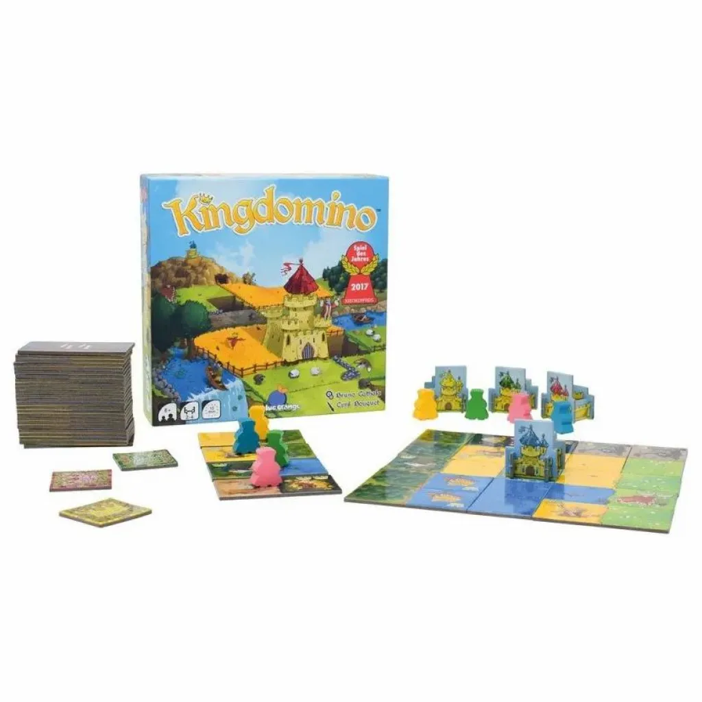 - 4 tuiles de depart, 4 châteaux en 3D, 48 dominos et 8 rois en bois de 4 couleurs